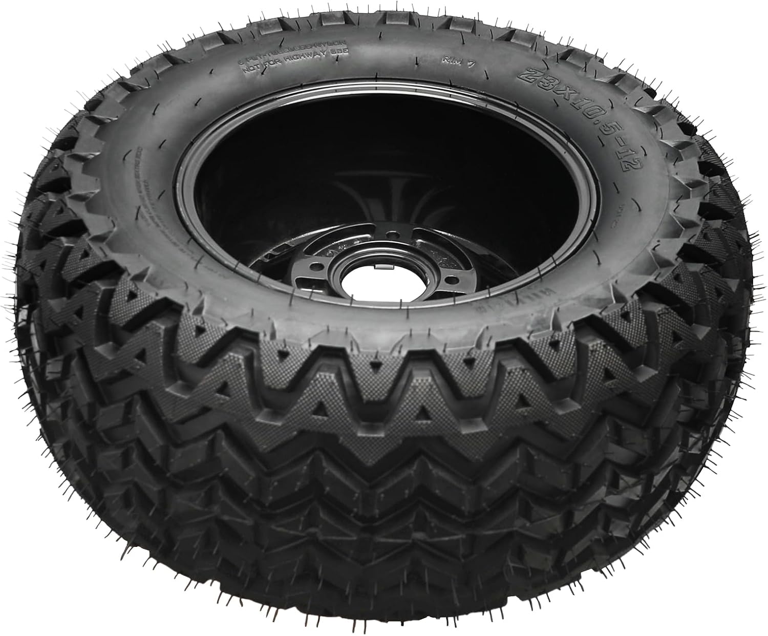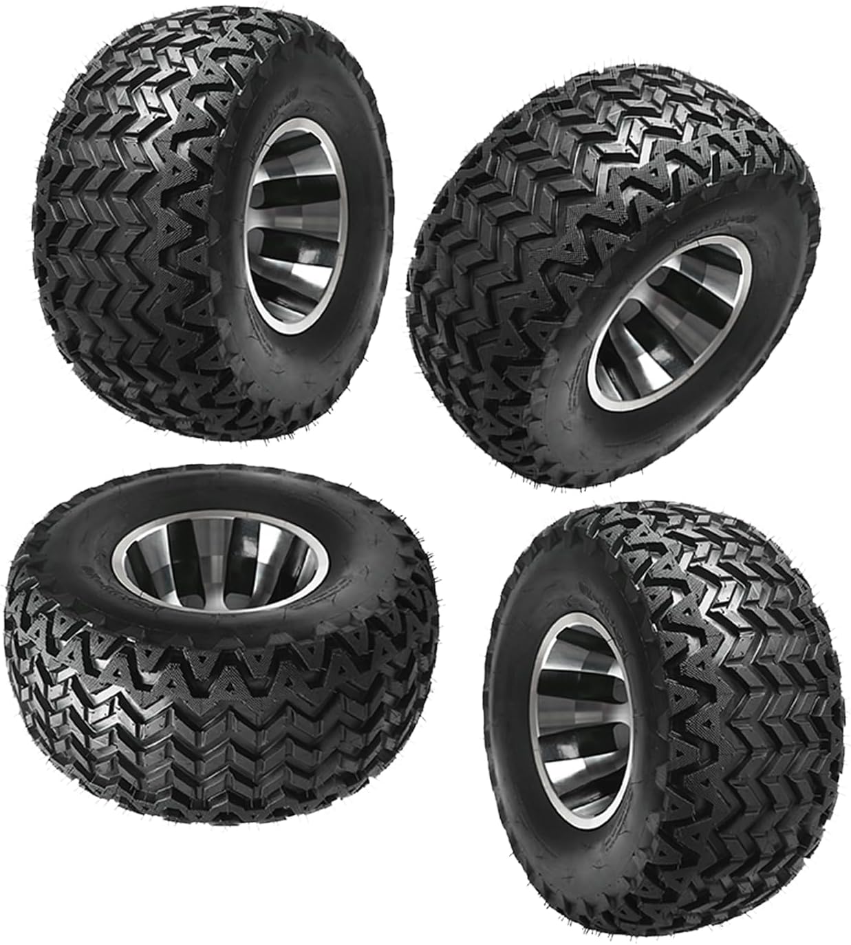 Pre-mounted on a durable 7-inch aluminum wheel.Made with heavy-duty 6-ply rubber, enhanced puncture resistance, load support, and longer service life for off-road and turf applications.Supports up to 909 lbs at just 12 PSI, providing a cushioned, low-pressure ride ideal for lawn care, agriculture, or commercial use on soft terrain.Unique pineapple-pattern tread provides excellent traction without damaging grass or turfIdeal for UTVs, golf carts, lawn mowers, go-karts, sightseeing vehicles, and sweepers