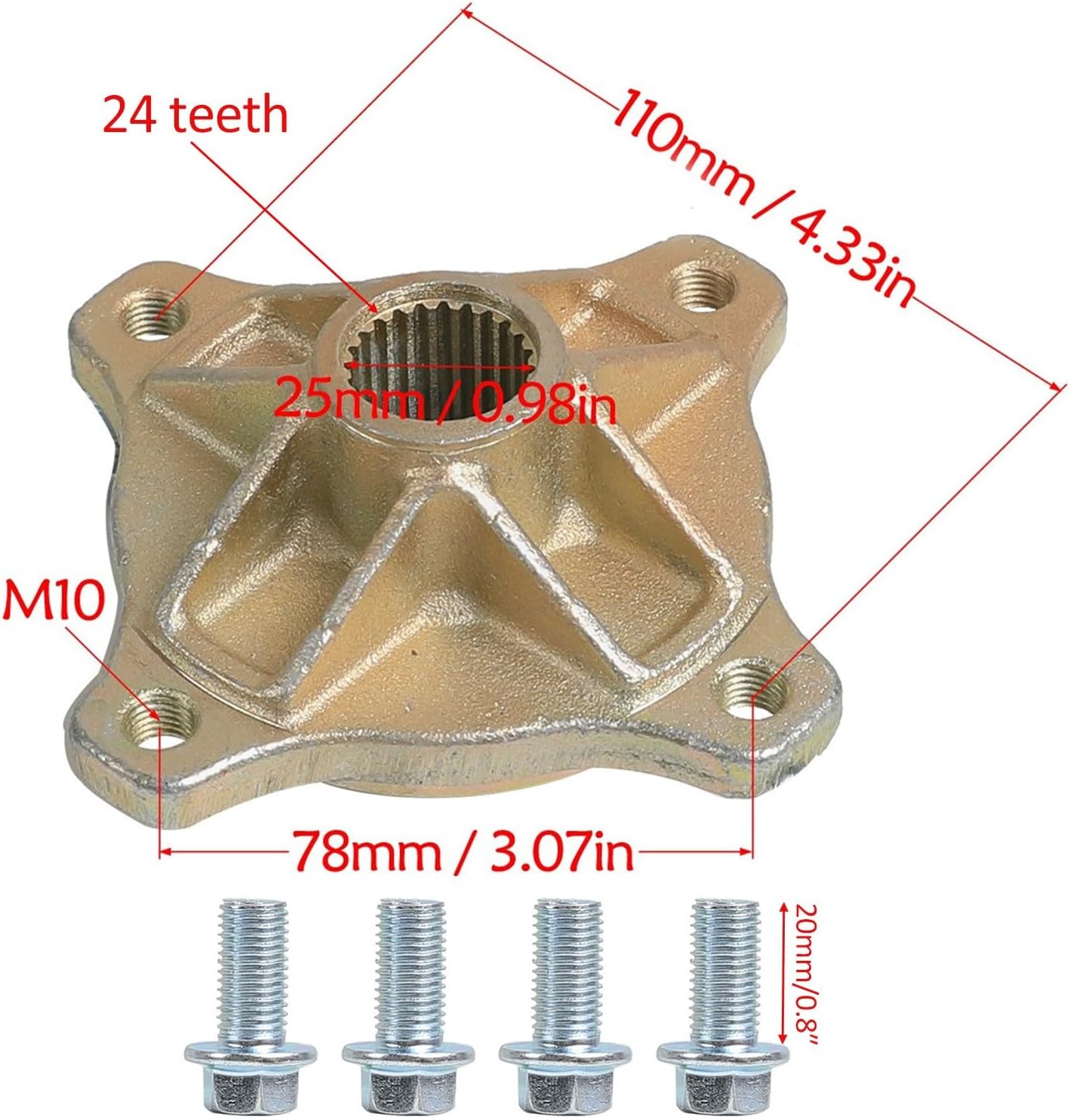 Product Features and SpecificationsTire Size: 16x8-7Wheel Diameter: 7 inch (178 mm)Bolt Pattern: 4-lug, 110 mm (4.33 inch) spacingAxle Hub Spline: 24TApplication: Rear wheels for off-road vehiclesMaterial: High-strength rubber tire with metal rimLoad Rating: Suitable for recreational and utility vehiclesKey FeaturesHeavy-Duty Design: Built for durability and impact resistance on rough terrain.Perfect Fitment: 4-lug 110 mm bolt pattern fits most Chinese ATVs and go-karts.Smooth Handling: 16x8-7 tires deliver superior traction and stability.Versatile Use: Ideal for ATVs, UTVs, lawn mowers, buggies, go-karts, and quads.Ready to Install: Includes rims and axle hubs for a complete setup.Product DescriptionUpgrade your off-road vehicle’s rear traction and stability with this 2 Pack 7" 16x8-7 ATV Wheel Kit, engineered for ATVs, UTVs, go-karts, buggies, and utility vehicles. Each tire is mounted on a durable 7 inch (178 mm) steel rim with a 4-lug 110 mm bolt pattern, and includes a 24-tooth axle hub, making it a plug-and-play fit for popular models like Taotao and Coolster.The heavy-duty tread provides optimal grip across sand, mud, grass, and dirt, ensuring smooth rides whether you're racing, drifting, or mowing. Built from premium rubber and metal, these tires are designed to withstand off-road abuse while maintaining performance.Whether you're replacing worn-out parts or building a custom off-road ride, this complete rear wheel kit is the perfect solution to keep you rolling.CompatibilityFits a wide range of 110cc–250cc off-road vehicles using 7" rear wheels and 110 mm 4-lug pattern, including:Taotao ATVsCoolster BuggiesChinese go-karts, drift trikesUtility scooters and ride-on lawn mowersPlease confirm bolt spacing and spline type (24T) before purchase.Package Includes2x 16x8-7 Tires2x 7 inch Metal Rims2x 24T Axle Hubs