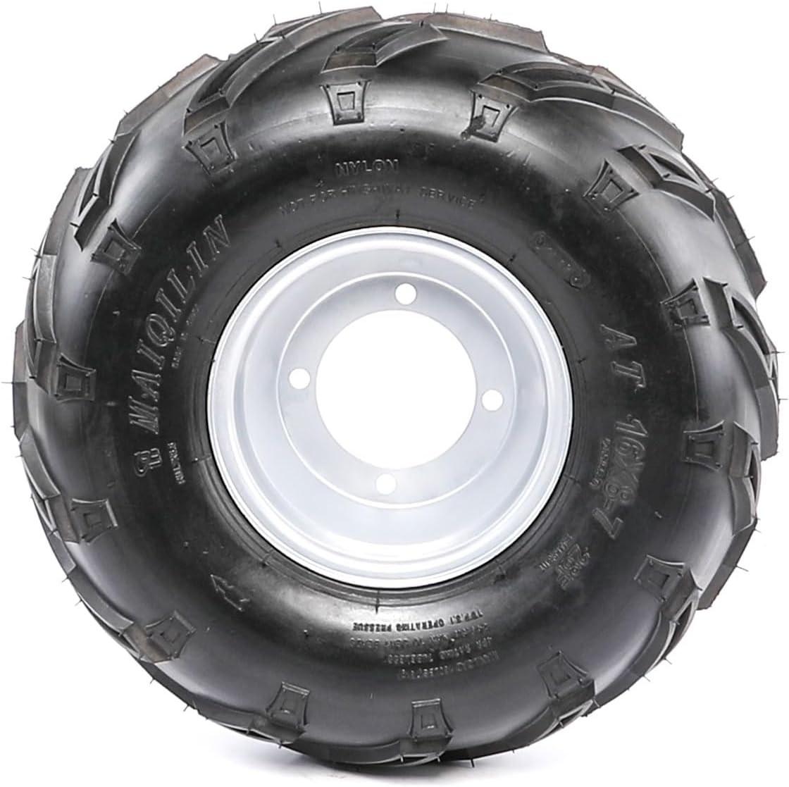 Upgrade your off-road setup with this complete 16x8-7 tire and wheel assembly kit, designed to fit most Chinese ATVs, mini bikes, and go karts. Each tire comes pre-installed on a rugged 5.0 AT rim with a 4-lug, 110mm bolt pattern, making installation quick and easy. These tubeless tires are made with 4-ply nylon construction (2 nylon plies on tread + 2 on sidewall), ensuring exceptional grip and durability on dirt, grass, gravel, or trail conditions. The included wheel hubs make this kit an excellent choice for full rear-end upgrades or replacements. Note: Not for highway use. 【Specifications】 Tire Size: 16x8-7 Tread Design: Fire Pattern Ply Rating: 4PR (2 tread + 2 sidewall nylon layers) Rim Model: 5.0 AT / FY-002-012 Tire Type: Tubeless Max Inflation Pressure: 24 PSI (165 KPa) Operating Pressure: 10 PSI Max Load: 160 lbs (73 kg) Bolt Pattern: 4 Lug / 110mm diagonal spacing Fitment: Front or Rear use Condition: 100% Brand New For Use On: Off-road only (not highway rated) 【Package Includes】 2 × 16x8-7 Tubeless Tires with Rims 2 × Rear Wheel Hubs (4 Stud, 110mm Bolt Pattern)