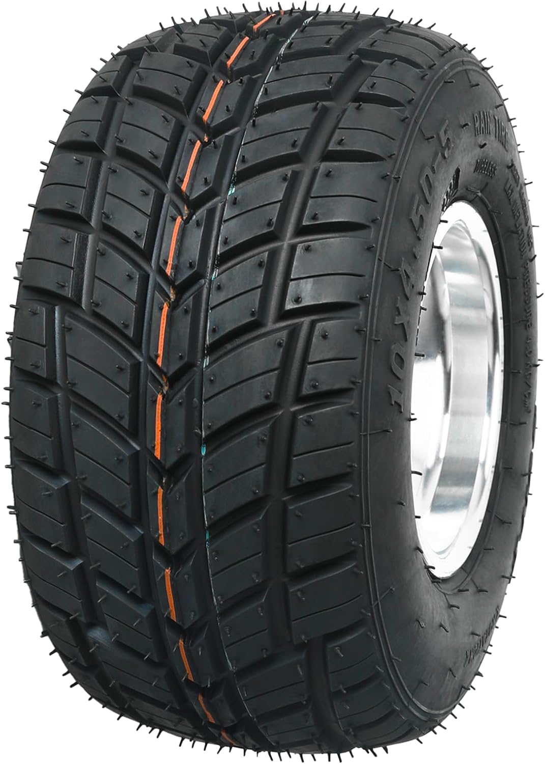 Upgrade your ride with 10x4.50-5 Rain Road Go Kart Tires with Rim, designed for excellent performance, durability, and easy installation. These pre-mounted tires and rims are ideal for go karts, ATVs, drift trikes, and more.Specifications: - Stud: 3 - Rim: 5" - Tire Type: Smooth Slick Tubeless - Size: 10x4.50-5 / 10x4.50x5 - Height: 260mm (10.24") - Width: 135mm (5.31") - Bolt Hole Size: 8.5mm (0.33") - Bolt Hole Distance: 48mm (1.89") - Ply Rating: 4PR Tubeless - Max Inflation: 57 PSI Fitment: Universal fit for ATV, UTV, Go Kart, Golf Cart, Buggy, Quad, Lawn Mower, 4 Wheelers, Drift Trike, and other small utility vehicles.Package Includes: 2 Pack 10x4.50-5 Go Kart Tires with Rim (Rain Road Tread) A pair front wheel hubs Whether you're racing, drifting, or replacing old worn-out tires, this complete pre-mounted wheel set provides the traction, stability, and smooth rolling performance you need.