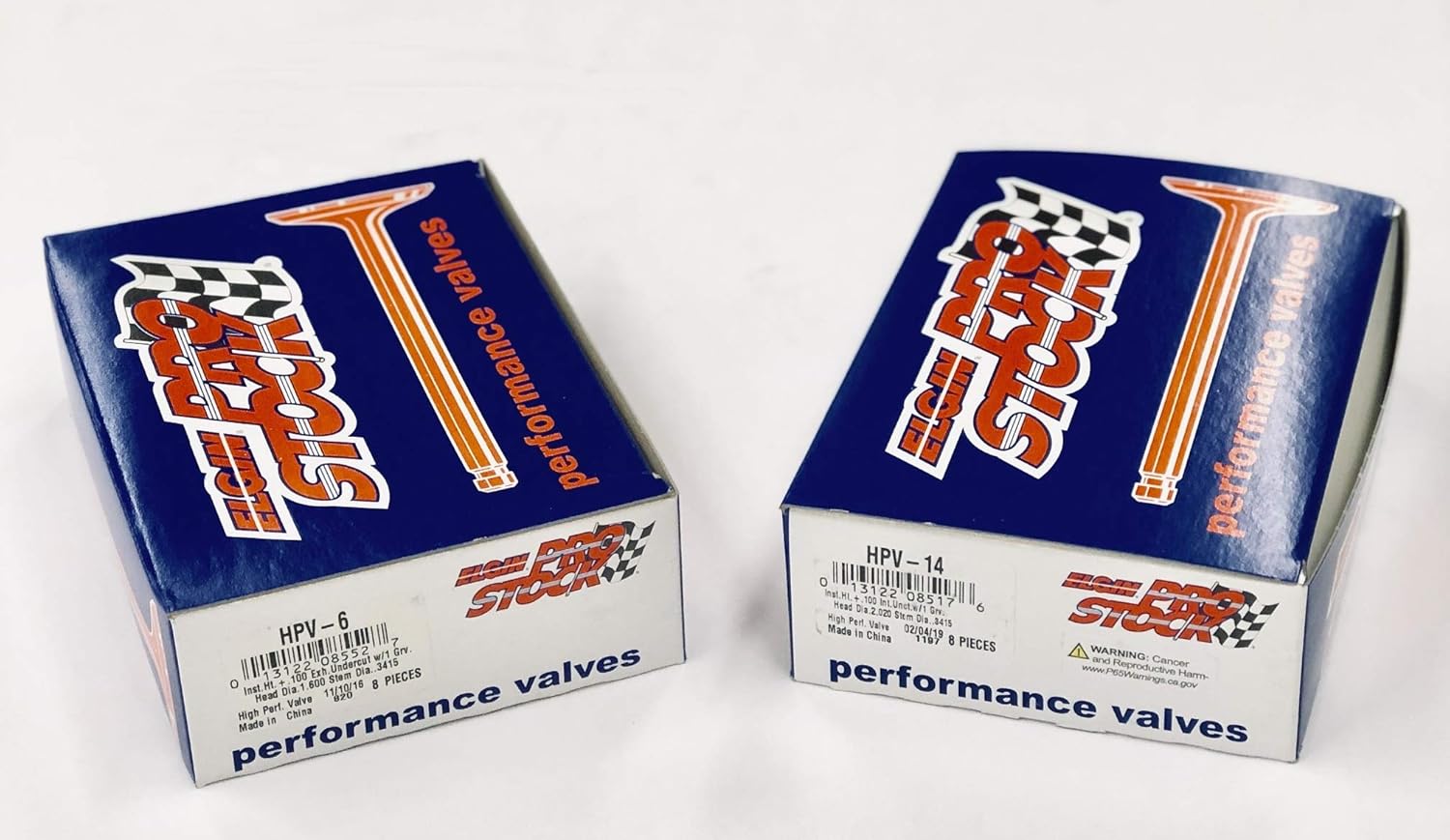 This listing is for a brand new set of 2.02" diameter stainless steel intake valves and 1.6" diameter stainless steel exhaust in +0.100" longer than stock length. Set includes 8 intake Valves and 8 exhaust valves. These are compatible replacements for many 1955-1993 small block Chevy 302, 307, 327, 350 and 400 V8 cylinder heads and also could fit many cast iron and aluminum aftermarket heads depending on the head diameter and length you need for your application. Valve Specifications - Intake: Head Diameter: 2.020" Swirl polished head with undercut stem. Valve Length: 5.025" Tip length: 0.250" Stem Diameter: 0.3415" (11/32") Valve Specifications - Exhaust: Head Diameter: 1.6" Swirl polished head with undercut stem. Valve Length: 5.025" Tip length: 0.250" Stem Diameter: 0.3415" (11/32") Both are made of Forged one piece 21-4N stainless with hardened stellite tip Chrome plated fully machined stem with undercut stems & 1 Groove. Lock Style: Single Groove