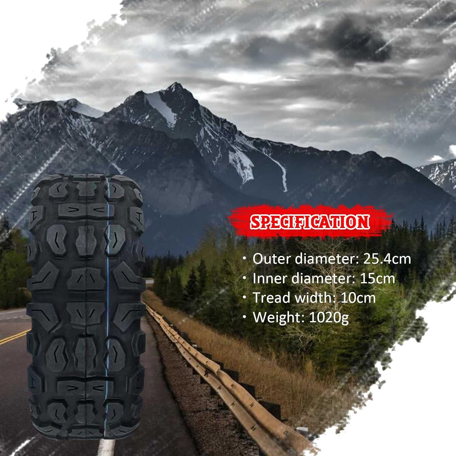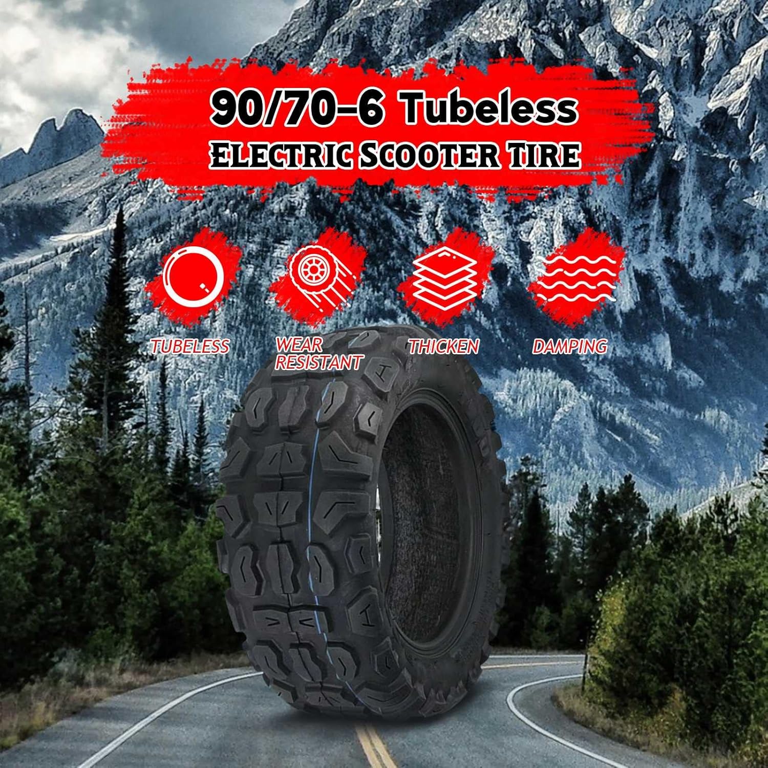 90/70-6 Scooter Tires - Thickened Rubber - Tubeless Off-Road Tires for ScootersSpecification・Black color・Material: RubberSize:・Outer diameter: 25.4cm・Inner diameter: 15cm・Tread width: 10cm・Weight: 1020gWhy choose tubeless off-road tires for your scooter?✅ Better grip, compared with an inner tube and solid tires, very anti-slip, especially in snowy days, rainy days and muddy roads.✅ Great handling and better shock absorption, super comfortable, very good grip and drive on gravel and forest paths, better grip even at high speeds.✅ With high stability and greatly improved cornering performance, especially when riding on gravel etc., you will notice a noticeable difference.✅ Thicker premium rubber material and strong profile. The inner tubes are very easy to puncture, but our tubeless tires are not easy to puncture and are resistant to high temperatures.✅ Compared to the original tires, you will notice only a small amount of vibration (due to the structure of the tire) and low rolling noise.Package List・1 x Tubeless tire