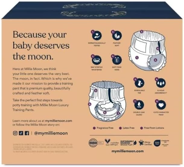 Make potty training a breeze with Millie Moon Training Pants. These unisex training pants are designed to help your little one transition confidently from diapers to regular underwear. The Size 5T-6T pants come in a convenient 46-count package, perfect for supporting your child through this important developmental stage. These training pants feature a comfortable, underwear-like fit that allows toddlers to easily pull them up and down independently. The absorbent core helps catch accidents while maintaining a cloth-like feel that lets your child know when they're wet, supporting the learning process. Whether for daytime training or nighttime protection, these Millie Moon pants provide reliable coverage while helping your child build confidence in their potty training journey.