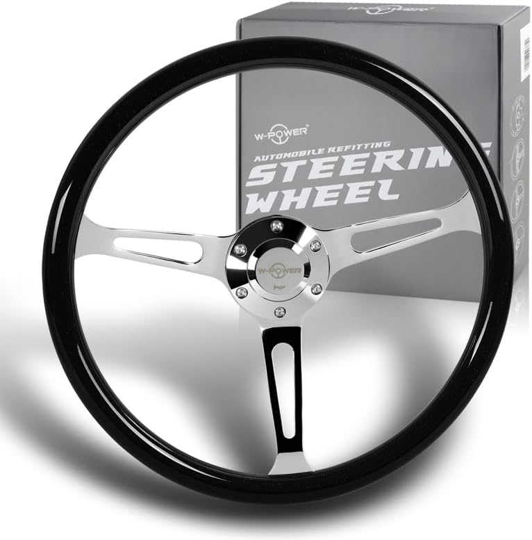APPLICATION:Universal FitmentRequires an Aftermarket 6-hole Hub Adapter Specific to Your VehiclePACAKGE CONTENT:1 x Steering WheelFEATURES:100% Brand New, Never Been Used or InstalledW-Power 380mm (15 inches), 3" Depth, 3 Spokes Steering WheelMultiple Styles Available: - Black Wood Grain Wheel + Matt Black Spokes / Chrome Spokes- White Wood Grain Wheel + Matt Black Spokes / Chrome Spokes- Brown Wood Grain Wheel + Matt Black Spokes / Chrome Spokes- Black Vinyl Wrap Wheel + Matt Black Spokes / Chrome Spokes- Black Leather with White Stitch Wheel + Matt Black Spokes / Chrome SpokesFits Any Standard Aftermarket 6-hole Hub AdaptersUniquely designed, Eye-Catching Steering WheelGain a Racing Style for Your VehicleNOTICE:The Installation Instruction is NOT Included. A Professional Installation is Highly RecommendedThis Steering Wheel Does Not Support Air Bag / Cruise Control