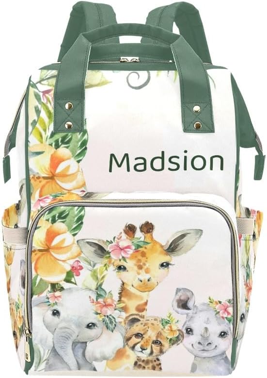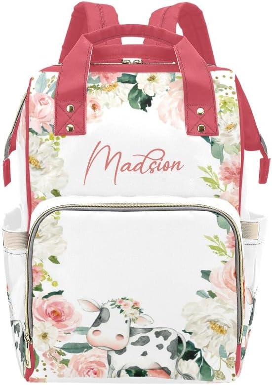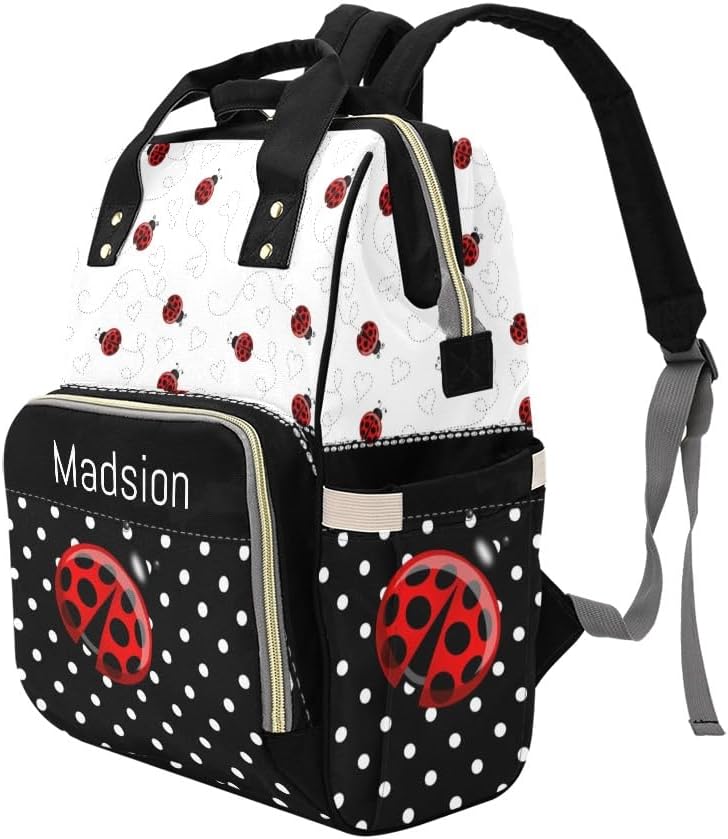 Personalized Name Multi-function Backpack/Diaper Knapsack /Tote Bag.Have everything you need while on the go with your little one.Padded Adjustable Shoulder Straps.Waterproof fabric, easy to wipe clean.Front compartment includes 3 seperate insulated pockets that can hold milk bottles. A mesh pocket featured.Measures: 10.83"(L) x 6.69"(W) x 15"(H) x 3.1"(Hand Drop)Zipper closure allows it easy to open and closeMulti function backpacks are suitable for many occasions.Applicable to: mother and baby travel, short trips, shopping, commuting, hospital prenatal check-ups, parent-child camping, etc.