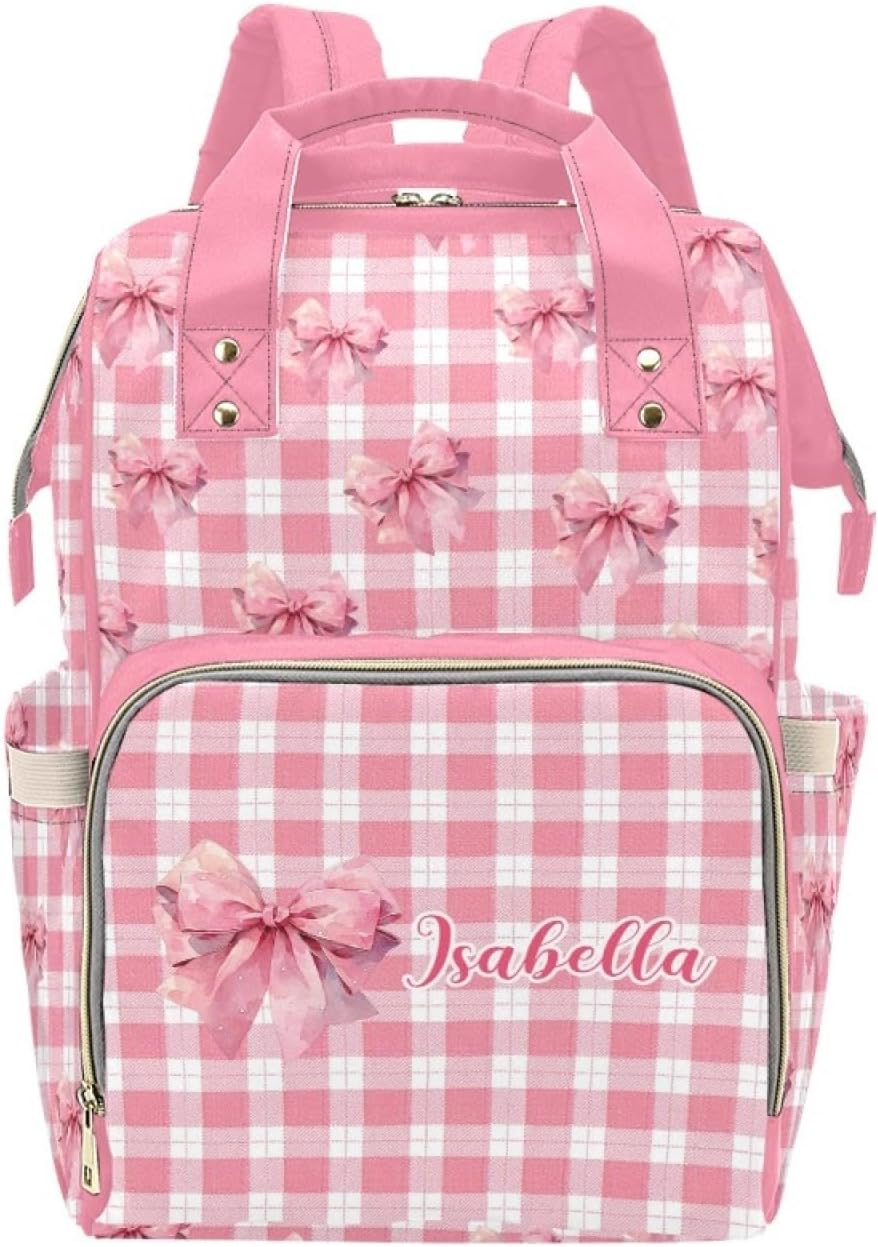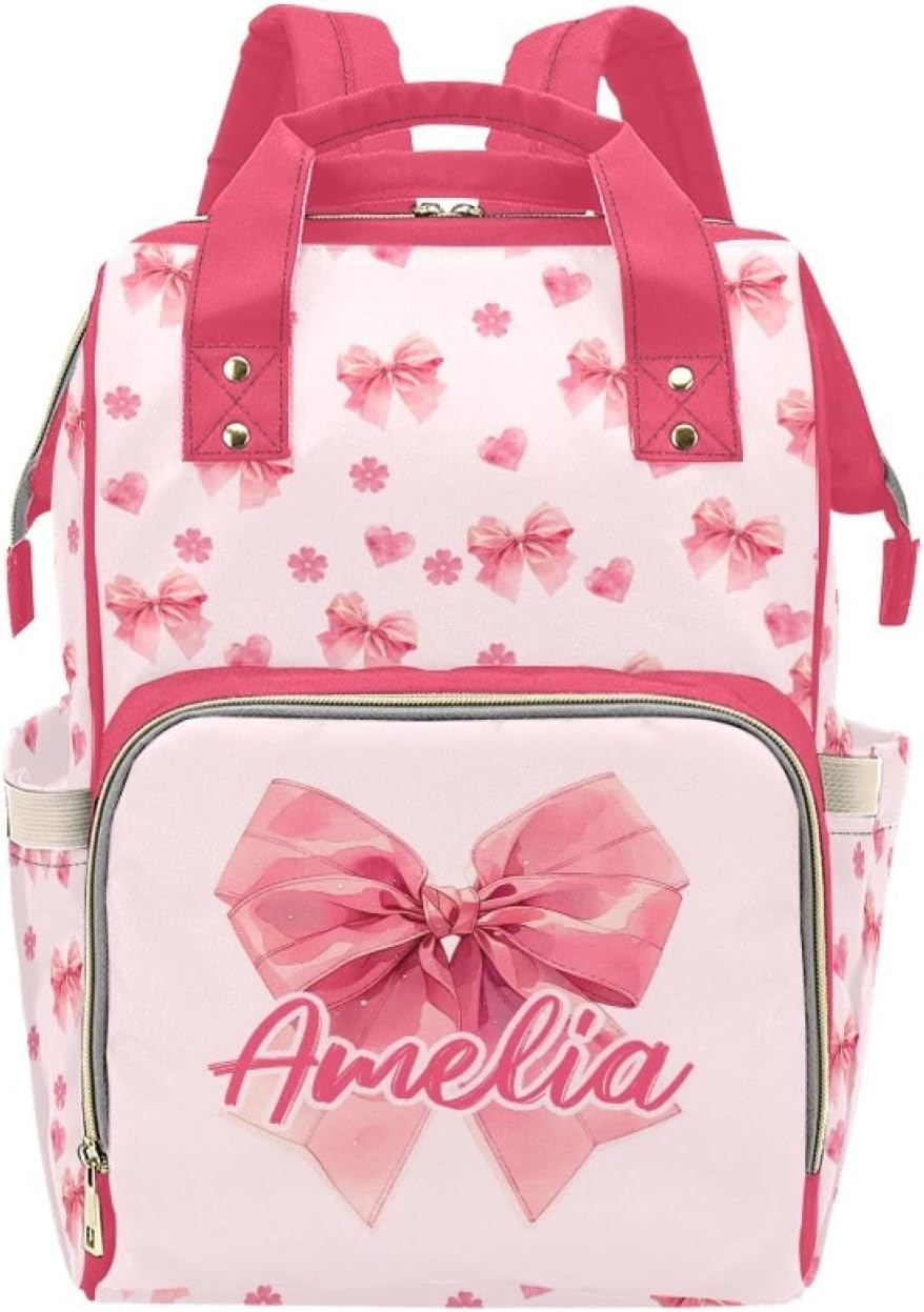 Personalized Diaper Bag Backpack – Custom Name Baby Nappy Bag for Moms & DadsPremium Waterproof Material – This custom diaper backpack is made from high-quality waterproof nylon, durable and easy to clean. The stylish unisex design makes it a great choice for both moms and dads, perfect for everyday use or travel.Spacious & Organized Storage – Measuring 10.83"(L) x 6.69"(W) x 15"(H) with a 3.1" hand drop, this personalized diaper bag backpack offers a large main compartment, multiple inner pockets, and 2 side storage areas. Easily carry diapers, wipes, clothes, bottles, toys, snacks, and books without feeling cluttered.Multi-Pocket Functional Design – The front compartment features 3 insulated bottle pockets to keep milk or drinks at the perfect temperature, plus a mesh pocket for small essentials. Extra side pockets are ideal for wipes or water bottles, while inner compartments with 4 slip pockets and 1 zippered pocket provide maximum organization for baby and parent essentials.Comfortable & Versatile to Carry – Designed with padded back support and adjustable shoulder straps, this custom baby backpack provides comfort even during long outings. It can be used as a diaper bag backpack, shoulder bag, or stroller bag, making it convenient for shopping, daycare, travel, or family adventures.Perfect Personalized Gift – Customize this diaper bag with a baby’s name to create a thoughtful and unique keepsake. Ideal as a personalized baby shower gift, newborn gift, this custom name nappy bag is both stylish and practical—perfect for new parents.Easy Customization Process – 1. Select your style. 2. Click “Customize Now.” 3. Add the name you’d like to feature.