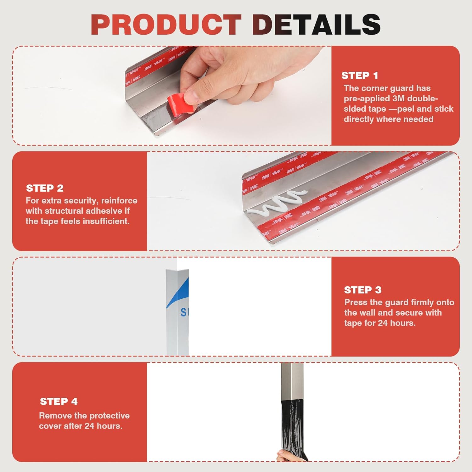| Recommended Uses For Product | stainless steel corner guards, metal corner guards, steel corner protector, stainless steel angle iron, stainless steel corner bracket, stainless steel furniture decoration, stainless steel bathroom corner, stainless steel corner post,90° corner guard, corner trim, 2 x 2 x 48 stainless steel corner guards, wall corner guard wide 2in, 15° edge hugs corner guard, 5° rounded corners protector, protector de esquinas y bordes,protector de esquinas y bordes |