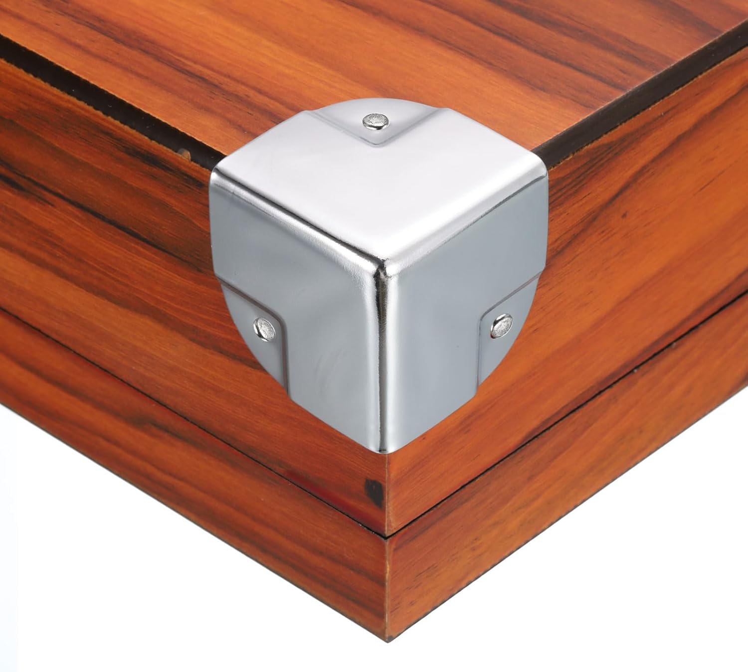 Description:1.Material. Made of metal, chrome plating surface, lightweight, easy to install, sturdy and durable.2.Advantage. The box edge corner protector can be used with a variety of table box corner protectors protect your table box or our wood cases from being damaged.3.Design. The corner and the folds are rounded (as opposed to sharp) and the edges are also curved. There are holes at the center towards the edge of each face, to facilitate fixing with pins or nails.4.Application. Corner protectors are mainly used for wooden objects such as tables, toolbox, decorative gift boxes, wooden boxes, and other square corners. Note: Using manual measurements, there may be 1-2mm error, please understand. Specification:Product Name: Box Corner ProtectorsMaterial: MetalMain Color: Silver ToneSurface Treatment: Chrome PlatingThickness: 0.8mm / 0.03"Mount Hole Diameter: 4mm / 0.16"Diagonal Length: 60mm / 2.36"Size: 50 x 50 x 50mm / 1.97" x 1.97" x 1.97"(L*W*H) Package Content:24 x Corner Protectors