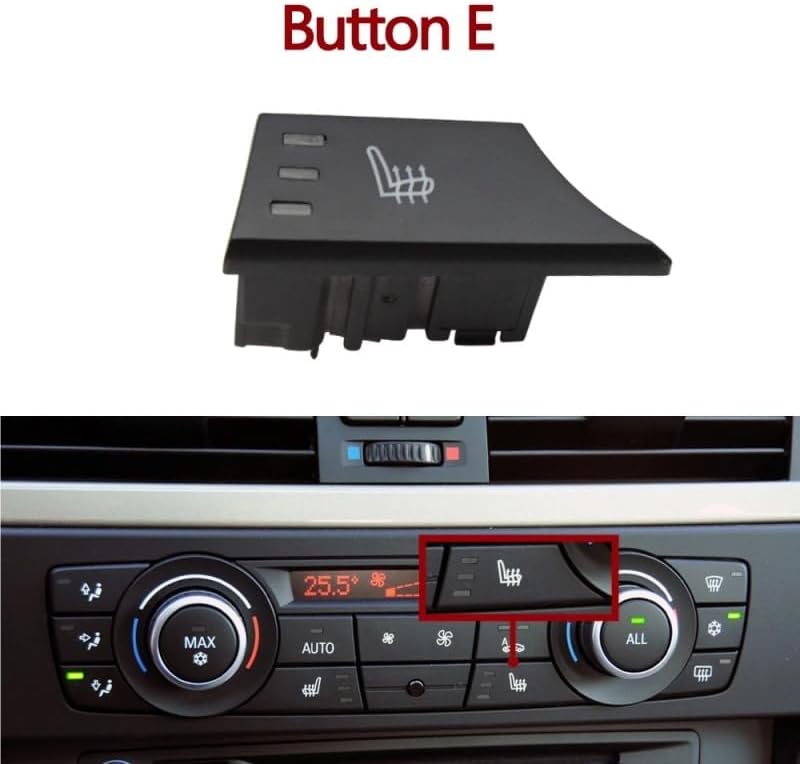 Car Dashboard Air Conditioning Ventilation Control AC Button For BMW 1 3 X1 X3 Series E81 E82 E87 E88 E84 E90 E91 E92 E93 F25OE.:64119344143Material: PC and ABS, Rubberized Coating.Advantage: Upgraded design, More Solid, Not easy to break, Replace perfectly.Application: For BMW 1 Series E81 E82 E87 E88 2007-20123 Series E90 E91 E92 E93 2008-2013X1 E84 2010-2015X3 F25 2011-2013PS: The surface of our buttons is sprayed with UV material, which can prevent scratches and paint off, and is more durable than the original one. So the color of our button is not as dark as the original button, after a period of use, the color will become coordinated.