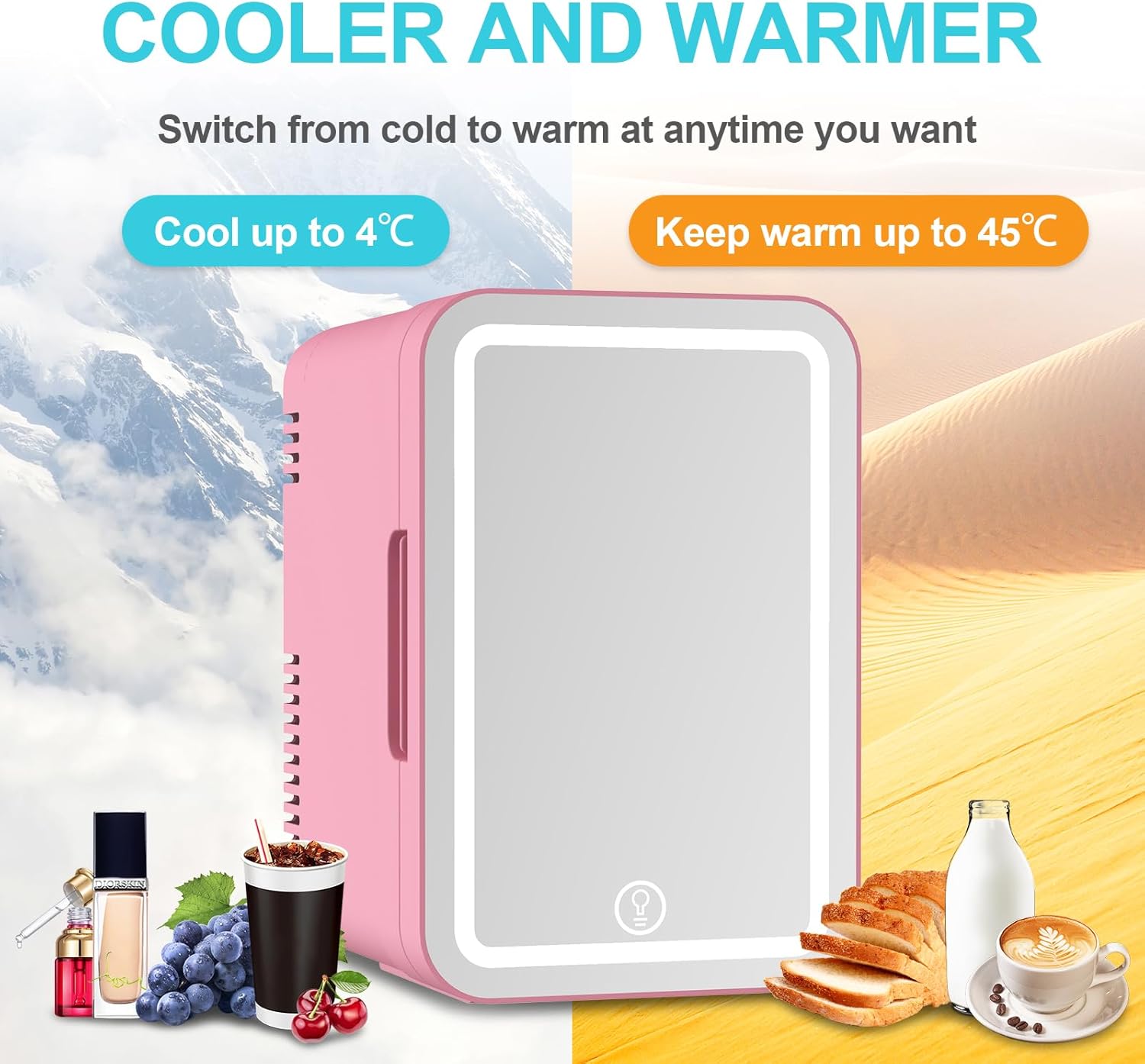 Product name: Mini mini refrigeratorProduct dimensions: 22.5 D x 18 W x 26.5 H cm (8.8 x 7.1 x 10.4inches)Capacity: 6 litersColor: pinkSpecial features: adjustable shelf, compact, low noise, portable, touch controlInstallation type: countertopDefrost system: frost-free