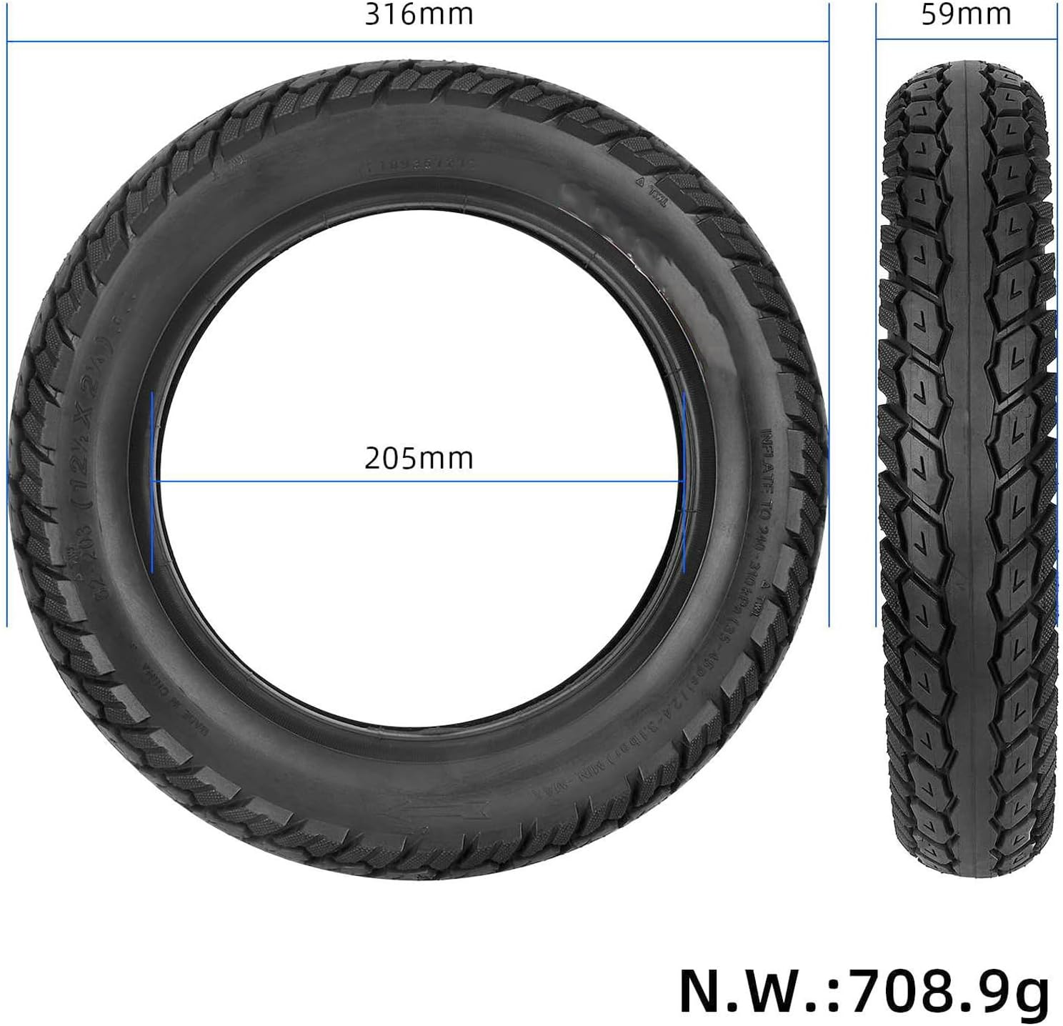 Welcome merchants to come to cooperate and negotiate business.We offer scooter/motorcycle tires, wheels, motors and other accessories in various sizes and in various types. (Please contact me if you need custom size and type).Note: The tread pattern of tires produced in different batches is slightly different, which does not affect the use.Material: rubberType: Inner and outer pneumatic tiresSales unit: Inner + Outer Tire(1 set)Specification: 62-203(121/2x21/4)Ply: 4pr45° / 90° Angle InflatablePackage weight: 0.9 kgLoad capacity: 150 kgSuitable for: for Electric Bike Tire Accessories, compatible with tire replacement of the same size, or DIY accessories.