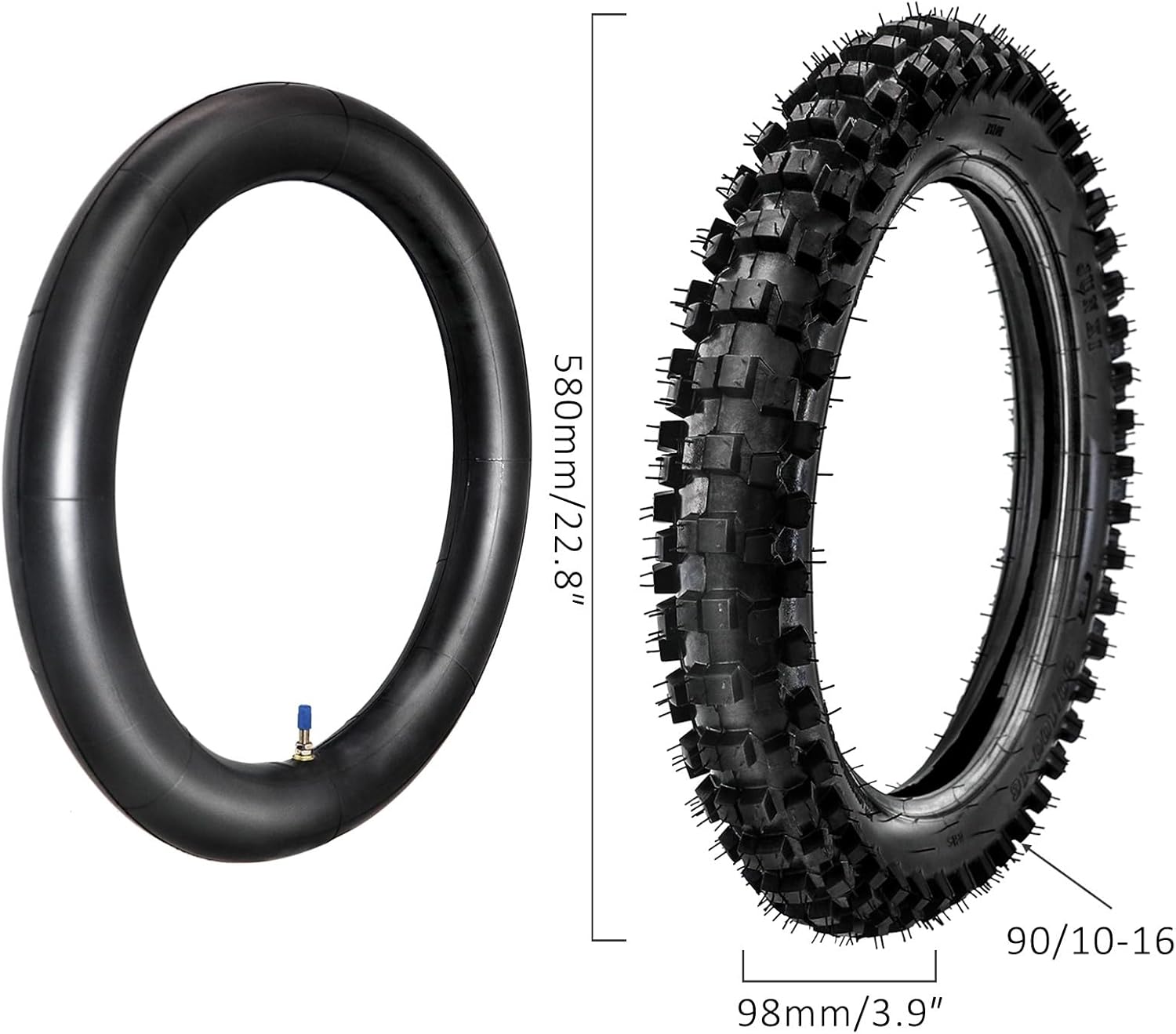 Upgrade your off-road vehicle with our brand new 90/100-16 Tire & Inner Tube, designed for superior performance and durability. Whether you're riding a dirt bike, motorcycle, or Pit bikes, this dual-purpose tire provides the traction and reliability you need for various terrains.Built with durability in mind, our tire ensures long-lasting performance even under the toughest off-road conditions. The excellent off-road traction allows you to navigate challenging trails with ease, giving you the confidence to tackle any adventure.Our 90/100-16 tire is not only designed for high performance but also comes at an affordable price, providing great value without compromising on quality. The package includes both the tire and inner tube, making installation quick and straightforward.Equip your vehicle with our 90/100-16 Tire & Inner Tube and experience the perfect blend of durability, performance, and affordability. Whether you're an off-road enthusiast or a casual rider, this tire is the ideal choice for enhancing your riding experience.