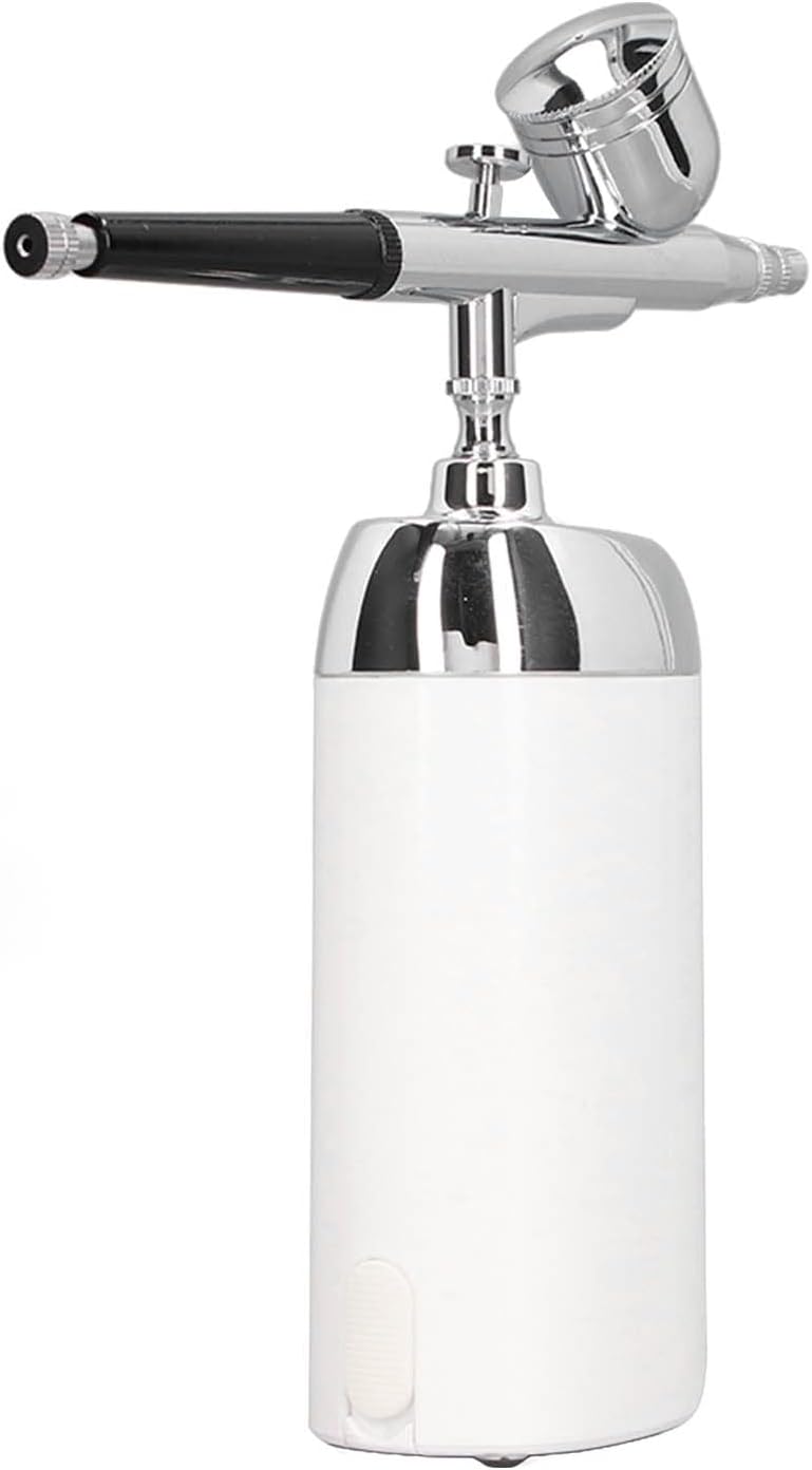 Specification : Item Type : Oxygen Facial Portable AirbrushMaterial : ABS , rubber , aluminumUse Time : 60 minutes (automatic shutdown after continuous use for 5 minutes)Air move : 12L/minuteWorking Pressure : 2 11PSI (adjustable pressure)Power Supply Battery : 1865 0 lithium ion battery (built in)Battery Capacity : 3400mAh 3 . 7VCharging Voltage : DC 5VPower : 6WPackage List : 1 x Air Pump Host 1 x Airbrush1 x Dropper1 x Wrench1 x Charging Cable1 x Instruction
