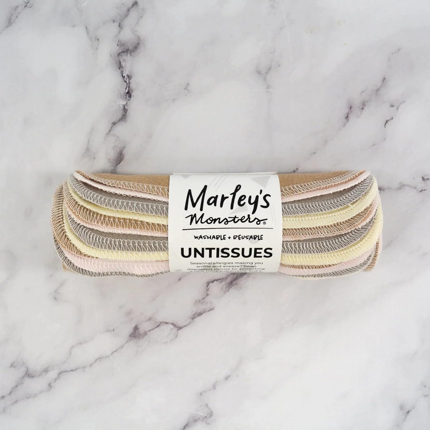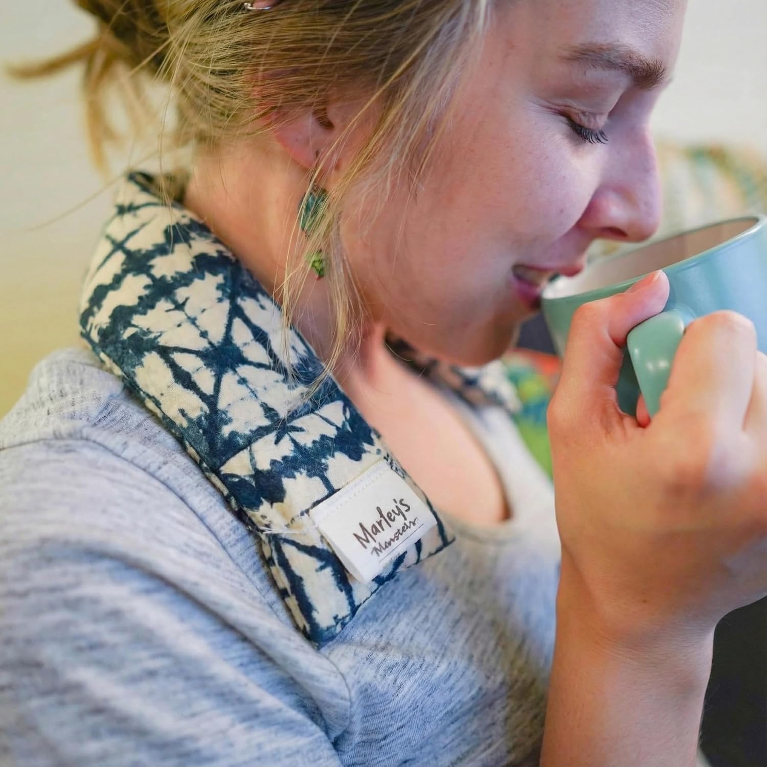 Marley's Monsters Reusable Soft Cotton Facial Rounds Pack (20 count Organic Natural color) with Laundry Bag, Reusable Soft Cotton Flannel Facial Tissues (12 pack Bare color), and Microwavable Flax Seed Filled Heating Pad with Washable Cover (Indigo Shibori)