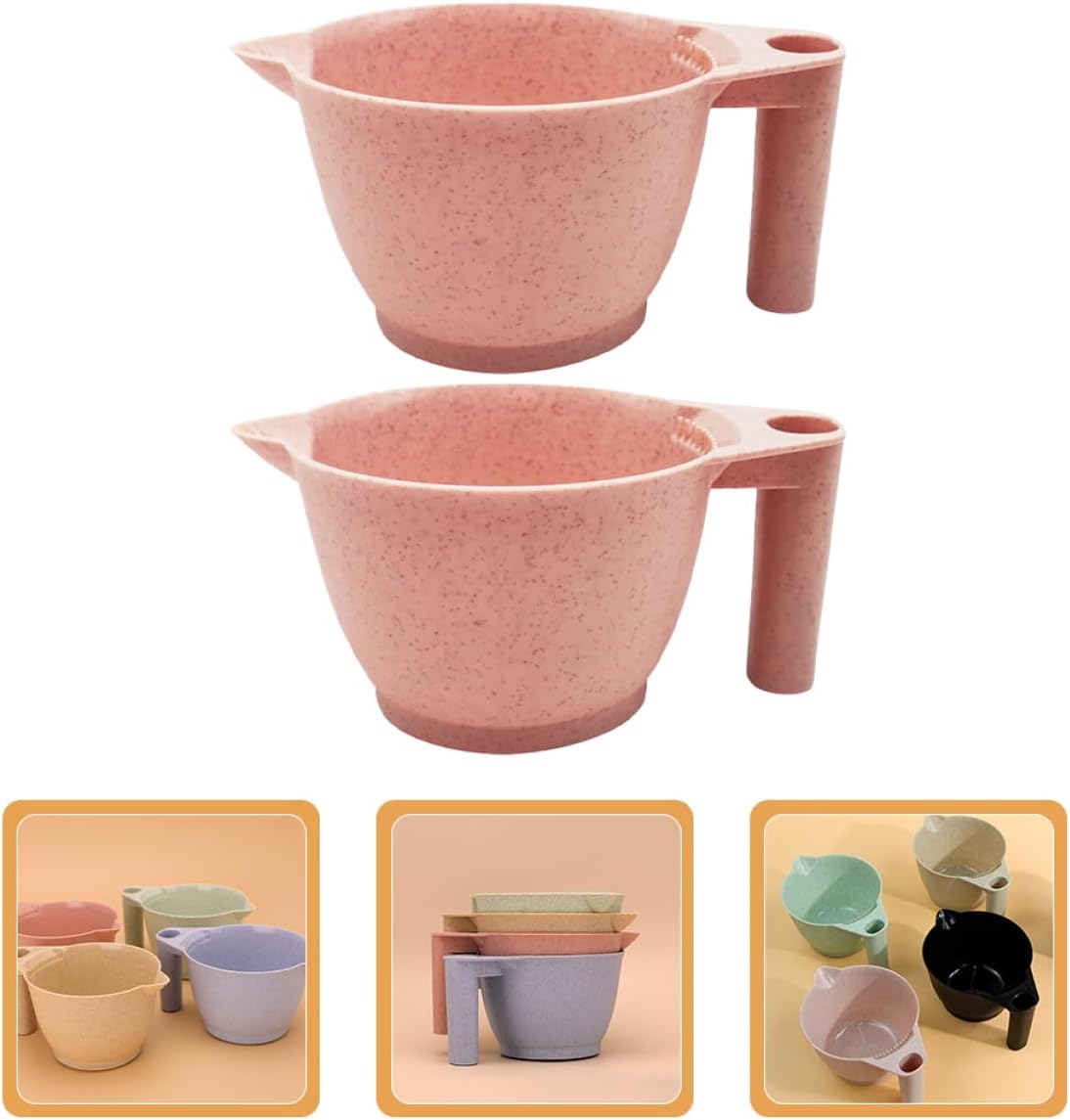 Package Include 4 x hair dye bowlsFeatures -Color:Pink Tint bowl set-Size:17.00X9.00X8.00cm/6.68X3.54X3.14in spout-Material:PP mixing- The mixing bowls with handle are excellent for tint mixing, hair color mixing, salon hairdressing hair dye Hair dye bowl- Hair dye bowls are washable and reusable, bring you a better usage experience bowls.- Hair dye bowls allow for easy mixing and application of your hair color, allowing users to DIY hair dye more efficiently peach.- Our color mixing bowls for hair salon are constructed of PP material, which is and sturdy stylist.- Hair dye bowls for hair salon are suitable for tint mixing, hair color mixing, professional and clear.Goods Descriptioncolor hair dye and necessary accessories for DIY hair dye.pink hair color These hair color bowls bring no hassle hair coloring experience.salon hair color bowl These hair dye bowls are suitable for professional salon.portable mixing bowl Made of sturdy PP materials, wear resistant, light weight, sturdy, stable performance and