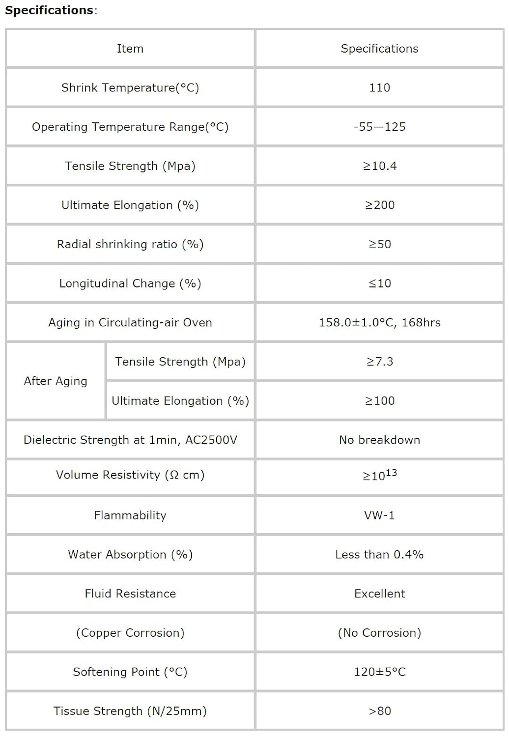 Electriduct brand Heat Shrink Tubing is adhesive-lined, flexible, halogen free and flame-retardant polyolefin heat-shrinkable dual wall tubing. This tubing has good mechanical strength which can protect from fluids, moisture and corrosion. They are used in a wide variety of electrical applications including; back end connector sealing, breakouts, and connector-to-cable transitions. High expansion ratio makes it possible to repair most damaged cable jackets without removing connectors. The product is UL recognized and the file No is E180908.