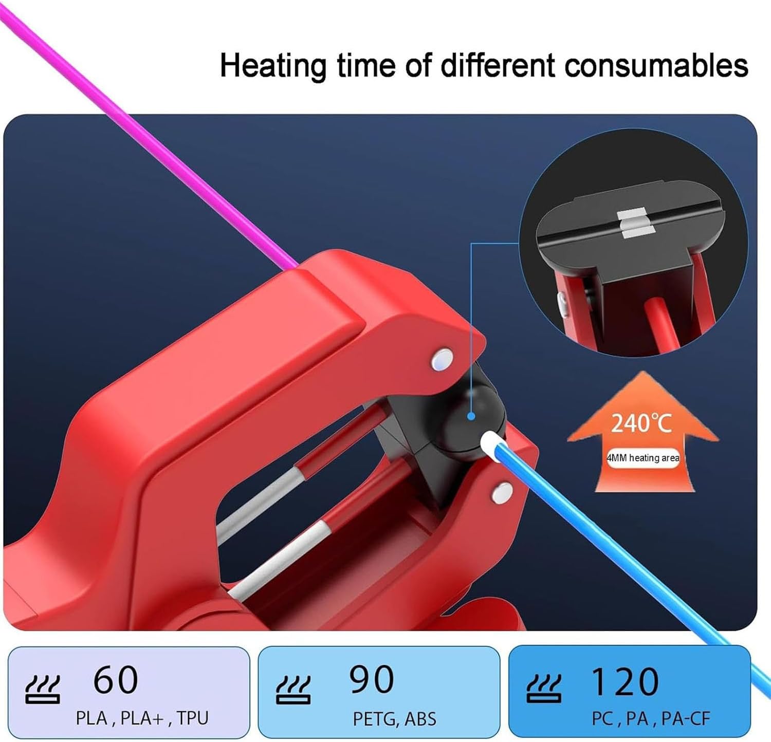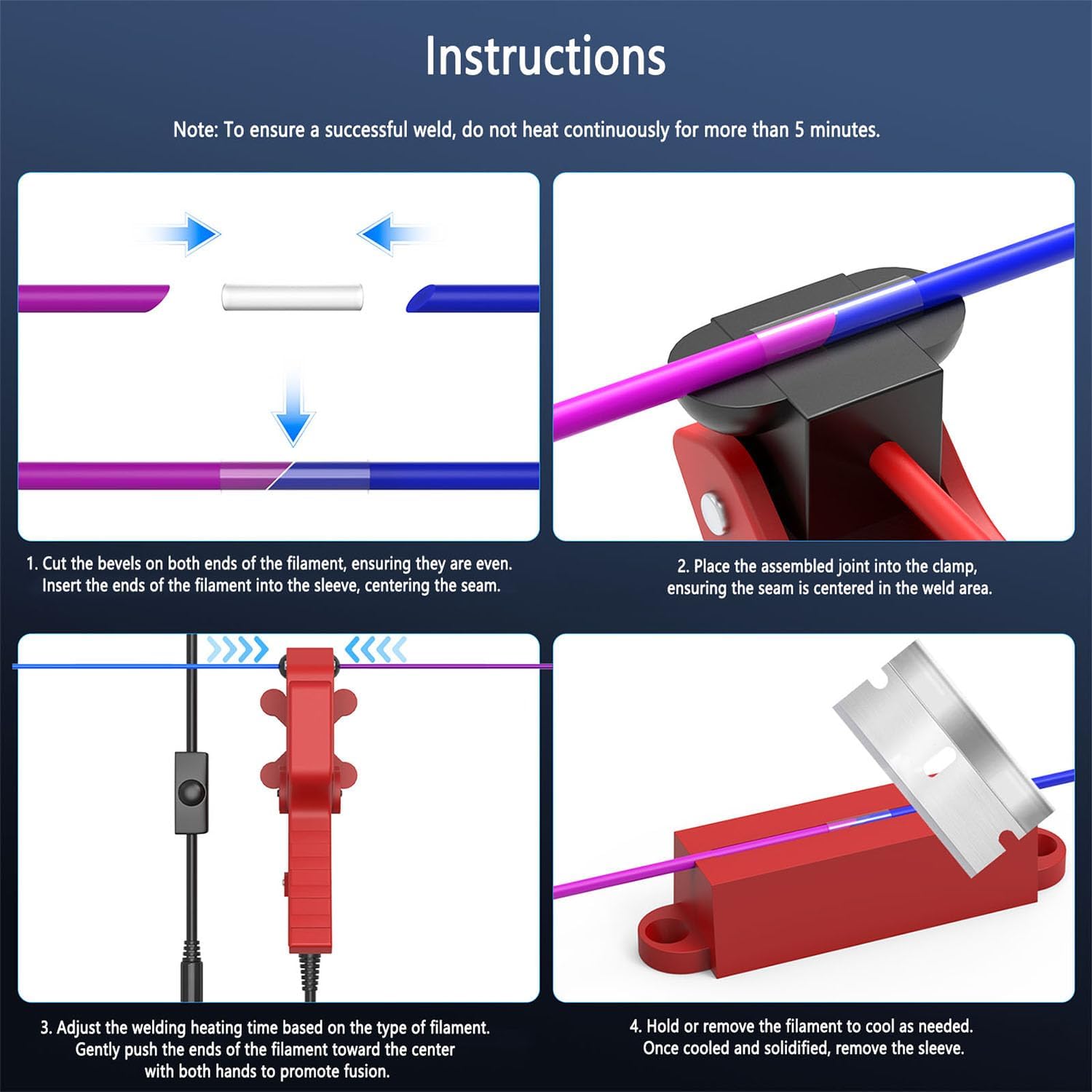 Specifications Filament Diameter: 1.75mm & 2.85mm Input: 100-240VAC Maximum Temperature: 240°C/464°F Power Supply: 24V Compatible Filaments: PLA/ABS/PETG/PC/TPU Packaging: Fusion Splicing Kit *1 1.75mm Fusion Sleeves *150 2.85mm Fusion Sleeves *30 Power Adapter *1 Instruction Manual *1