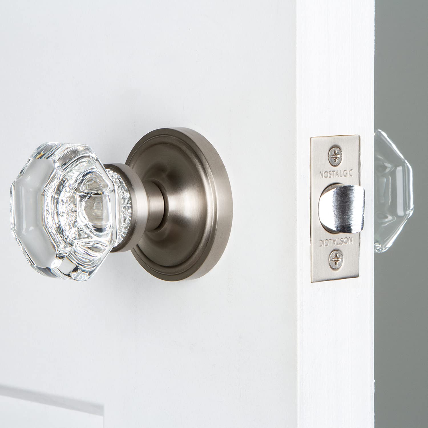 Product Description Introducing the Nostalgic Warehouse Classic Rosette Waldorf Door Knob – A Timeless and Refined Addition to Your Home Decor! Elevate the style of your doors with the clean lines and tailored elegance of an octagonal crystal doorknob. Both the distinctive brass door knob rosette and octagonal crystal knob exude classic, polished charm that will leave a lasting impression. Designed with homeowners, interior designers, and home décor enthusiasts in mind, our door hardware is versatile enough to suit your personal style. Whether you're a vintage and antique collector searching for a distinctive accent piece or a home improvement enthusiast looking to add a touch of historical charm, the Classic Rosette Waldorf Knob will meet your expectations. Each piece is meticulously hand assembled in the USA and made from high-quality materials designed to ensure durability. Whether used as a bedroom door knob, bathroom door knob, or closet door knob, this antique door knob is sure to become a cherished part of your home for years to come. Installation is a breeze thanks to an easy-to-use design. The measurements are thoughtfully crafted to fit standard doors, ensuring a seamless integration. With this set, you can transform your doors into works of art. From the Manufacturer Top quality, forged brass door hardware set includes both rosette backplates and two knobs. This passage set is ideal for use on closet or hallway door and does not lock.