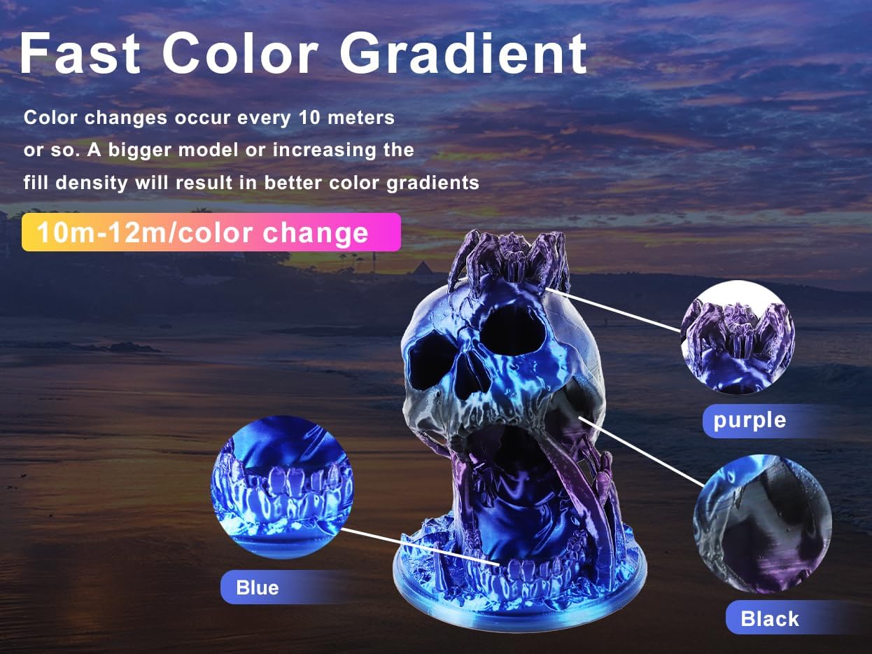 2 Pack PLA Printer Filament 1.75mm, Tricolor Silk Green-Red-Blue with Gradient Black-Purple-Blue,Dimensional Acc Silk Green-Red-Blue with Gradient Black-Purple-Blue,Dimensional Accuracy +/-0.02mm, 2KG