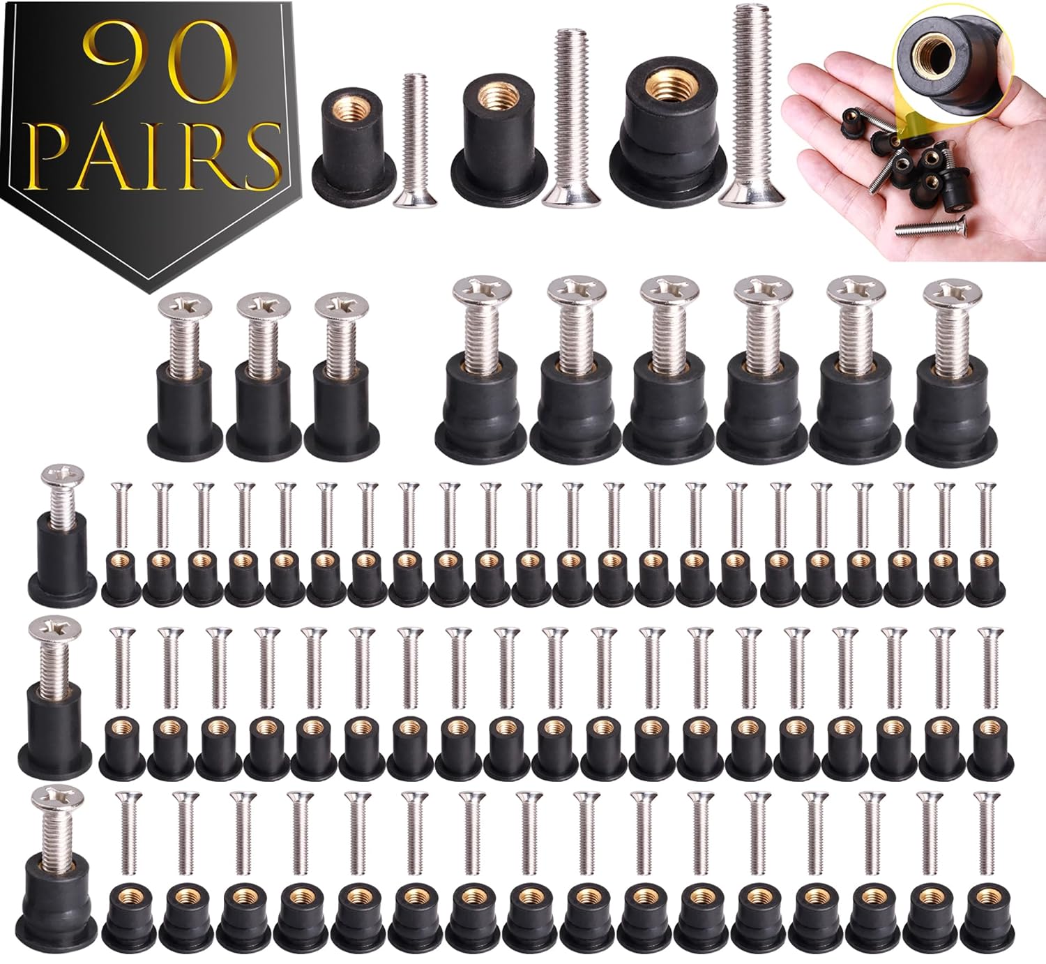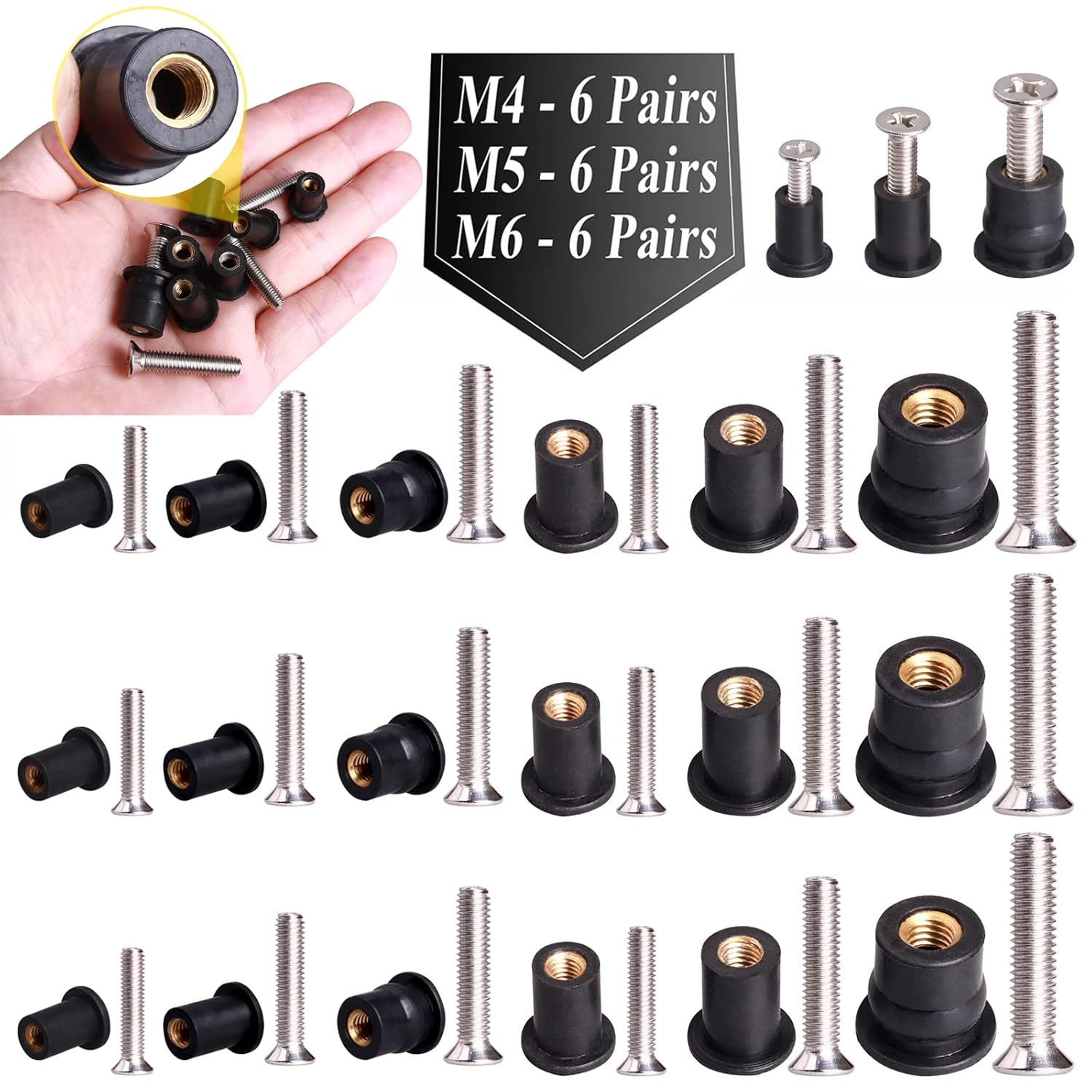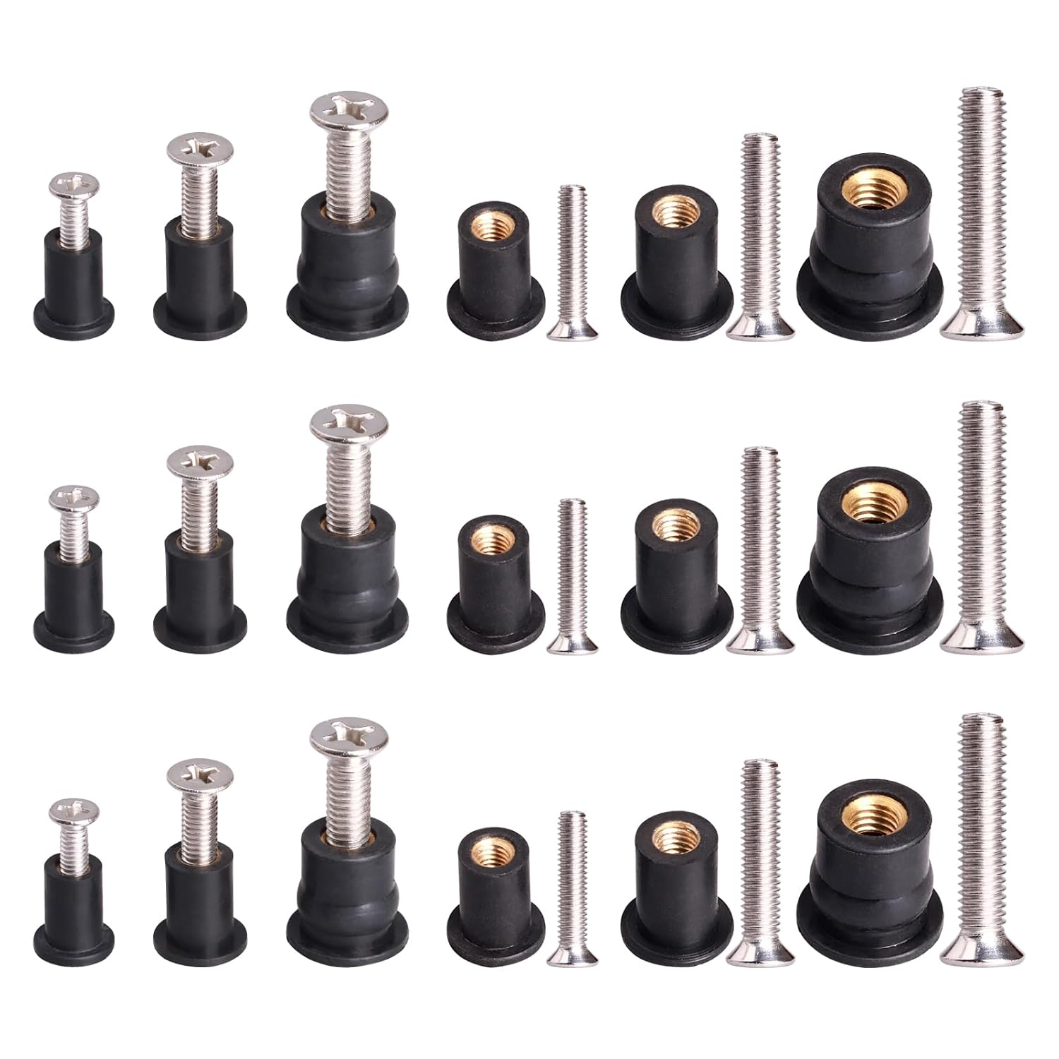 | Material Type | High strength rubber and brass nut, M4 Neoprene Nuts M5 Neoprene Nuts M6 Neoprene Nuts, M4 Well Nut M5 Well Nut M6 Well Nut, M4 x 20mm M5 x 25mm M6 x 30mm, M6 Rubber Nuts with M6 Stainless Steel Screws |