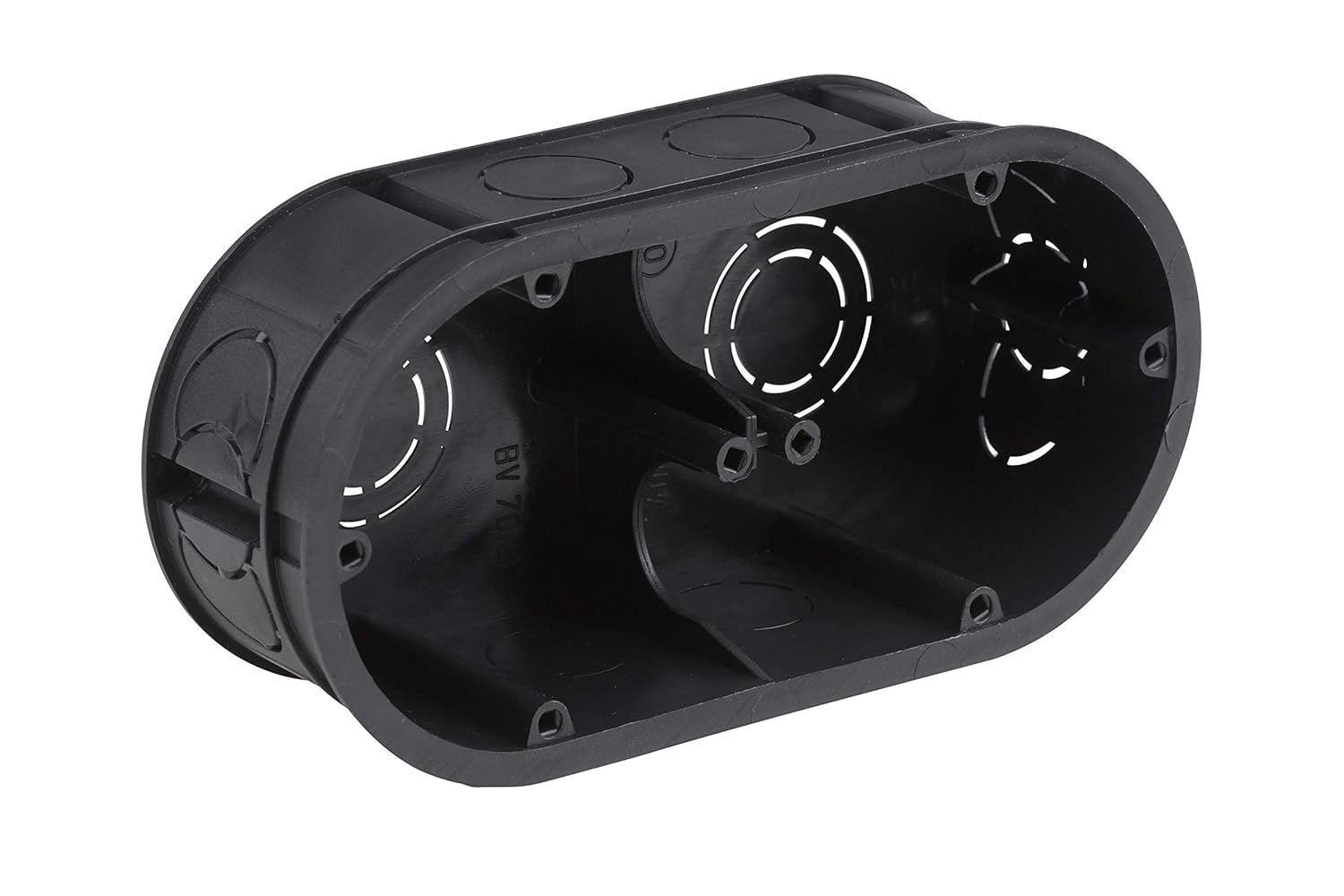 Flush-Mounted 2-Way Switch Box 45 mm Deep Black Pack of 10 Product details: Design: double mounting: flush-mounted, installation depth: 45 mm, protection class: IP20, dimensions: 145 x 75 mm, material: plastic, colour: black. Product features: Suitable for laying electrical installations under the plaster For installation of switches and sockets. Different sized inlets for inserting different thick cables Mounting is done by screw and expansion attachment. Flame retardant material. For use only in dry indoor areas. Contents / box contents: Pack of 10.