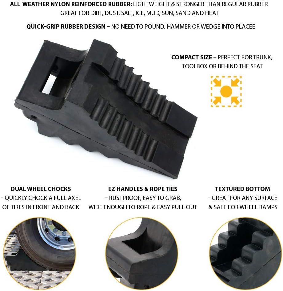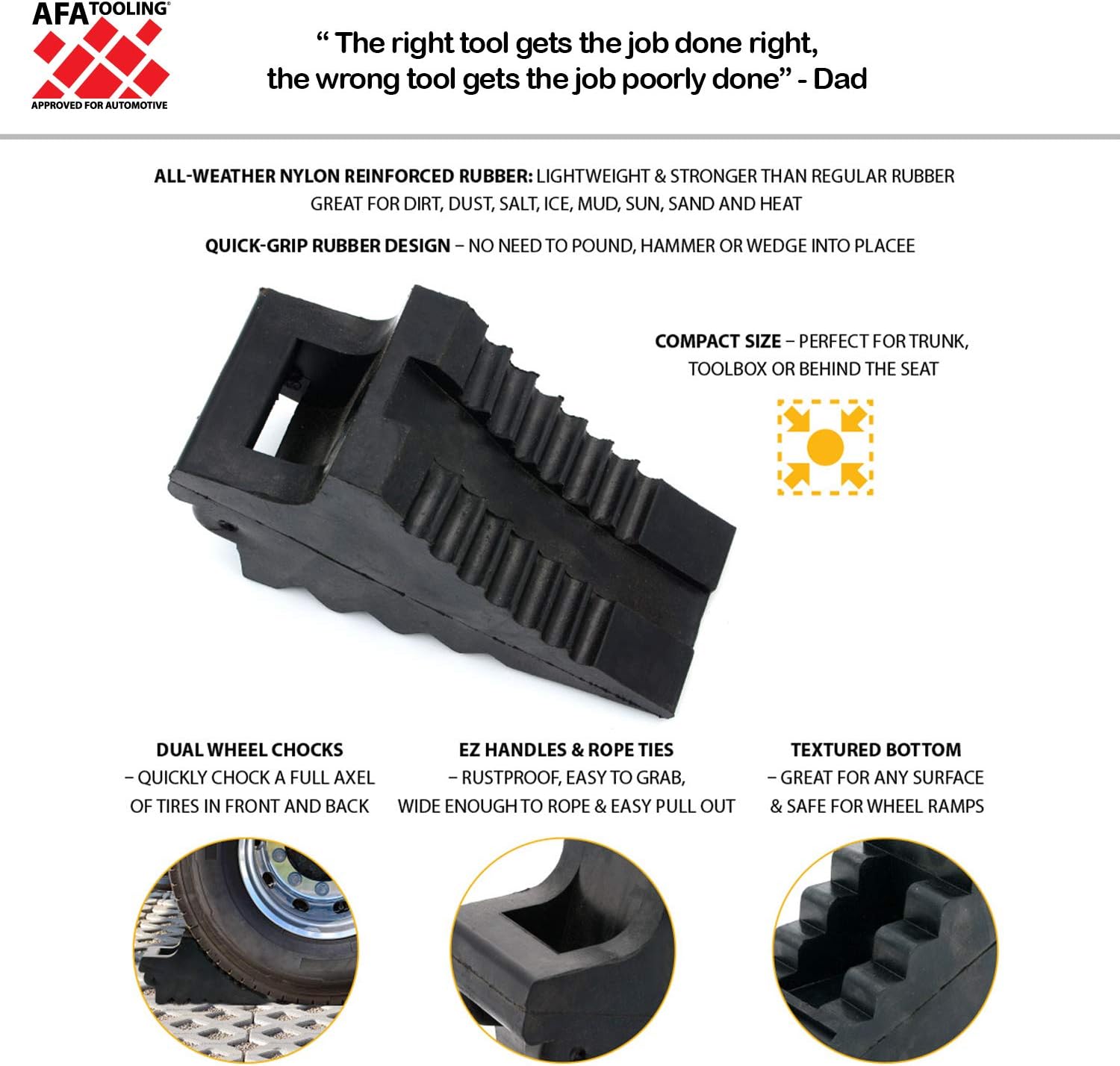 AFA Tooling - Set of 8 Wheel Chocks | Heavy Duty Rubber Wedge for Front and Back Tires | 4 Eyebolt, 4 Ergonomic Carry Handles | Chock Block for Your Camper, Trailer, RV, Truck, Car or ATV