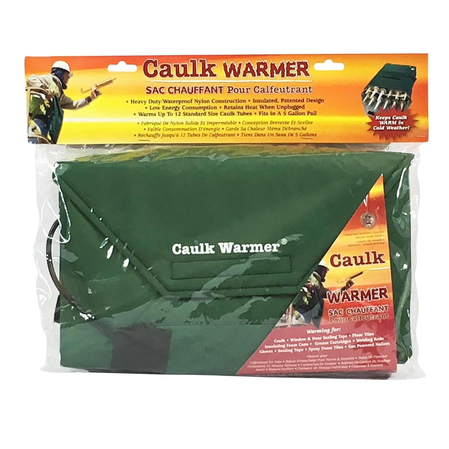 Make sure your caulk and other materials are ready to use even in the coldest conditions with the Arctic Warmer heating bag. This versatile bag keeps caulking at 80°F, even when the temperature drops to -13°F, and can hold a variety of tubes, cartridges, cans and tapes. Made from a sturdy nylon shell with a heat-reflecting barrier and closed cell polypropylene insulation, this durable bag is designed to last. Easy to use and carry, it features a 1-inch nylon strap with a quick disconnect, velcro closure and a practical storage pocket for cables. Operating at 120 VAC and 50 watts, it provides energy efficient heating, making it an essential tool for professionals working in cold environments.