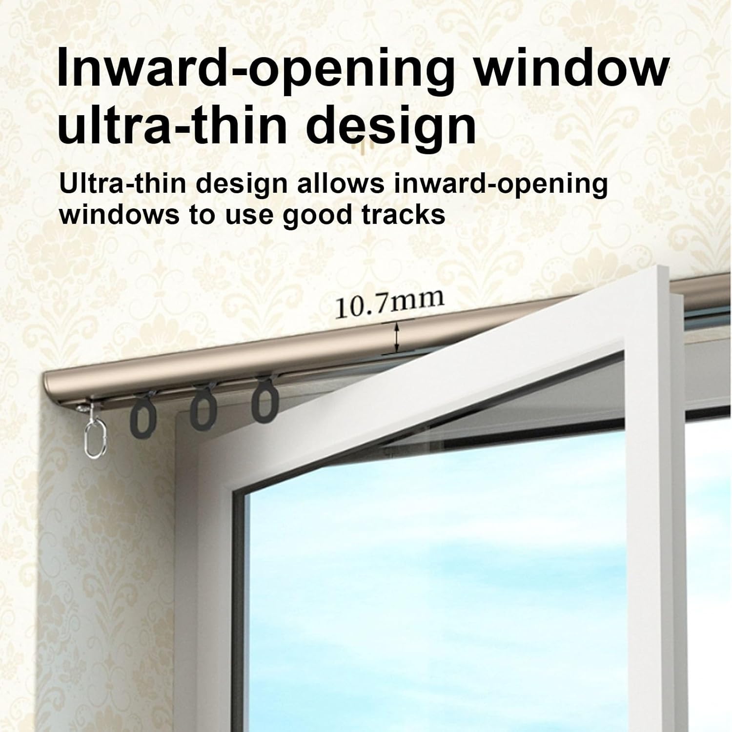 Product Name: Curtain Track Ceiling Mount Internal Open Bay Window Slide Rail Micro-arc Four-wheel Aluminum Alloy Single Guide RailProduct Dimensions: We have any size available, awaiting your purchase, and we can customize any design for you. The aluminum curtain track system can be easily installed in any space. The sliding curtain track set is perfect for living rooms, showers, bedrooms, ceilings, bay windows, RVs, privacy, hotels, hospitals, classroom partitions, or any place you like. Our options for ceiling or wall-mounted curtain track installation will meet your desired appearance.The track can be cut to appropriate size using a hacksaw.The curtain track can be used for room dividers, RV curtains, bed partitions, wall partitions, room shower curtains.Easy to slide open and closeEasy to install❖ Specifications:Material: Aluminum alloyLength: 1-12m/4ft-40ftRollers: 8 per meterLoad: 50kg/110lbsColors: White/Black/Champagne☀☀ Friendly Reminder:Please confirm the product dimensions needed before placing an order.For safety reasons, regularly check if screws and bolts are loose, cracked, or damaged.Due to manual measurement, there may be a 1-3 cm error. Please refer to the actual product.Due to differences in light and screen, the color of the product may vary slightly from the images. Please refer to the actual product color.If you have any questions, feel free to email us. We will respond to your inquiries promptly.