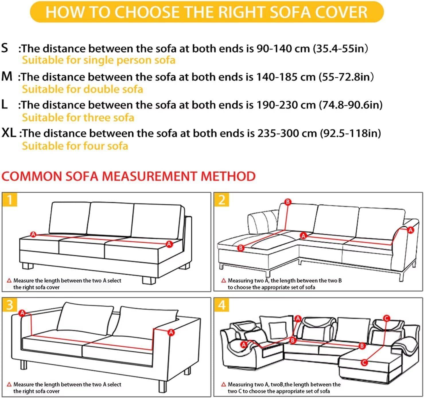 Modern Home Decoration Sofa Slipcovers Couch Covers Furniture Protector [Size]4 Size for Choose,S-M-L-XL. (More details please refer to the measurement guide in photo, please measure before purchasing.) [Package Includes]: Only 1 piece sofa cover, Does not include the pillowcase. [Feature] 1.Super Stretchy Fabric: Sofa covers is made of high quality fabric,soft and comfortable. 2.Anti-slip Surface& Elastic Band:Sofa covers come with elastic band design and anti-slip surface to ensure the slipcover stay in place firmly and provides your sofa all-round protection. 3.Full Protection: Protect your chair from stains, spills, wear and scratch. [Note] 1.Please allow 1-3cm error due to manual measurement. 2.Due to the difference between different monitors, the picture may not reflect the actual color of the item.
