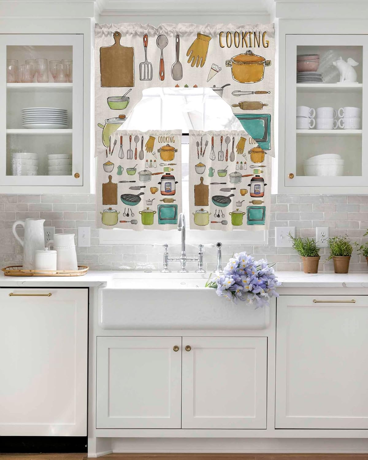 Widely Used: Our universal swag and tier curtain set is highly recommended by many customers as home decoration items.Beautiful and practical rideaux de chambre decoration are not only used in kitchens, bedrooms, dining rooms, living rooms, bathrooms, but also match other occasions, such as home office, laundry room, kids room, nursery, balcony, classroom, pet room, guest room, playroom, study room, washroom, coffee shop, cafe shop and more.Ideal Gift: Are you still worried about what gift to give for Christmas, Halloween, Thanksgiving, Independence Day, Mother's Day, Father's Day, Housewarming, Valentine's Day, St. Patrick, Easter, New Year? Why not take a look at our charming kitchen cafe curtain set, classic designs perfect for gifting to family, friends, colleagues and neighbours, etc.Various Styles: Our window drapery can perfectly match the style of your home.We have retro pastoral style, country farmhouse style, simple modern style, European aristocratic style, romantic French style, etc.Optional Colors: Bright colors are an important part of kitchen curtains sets for windows clearance.We have black, white, grey, red, brown, silver, beige for adults and pink, green, orange, blue, yellow, rainbow, multi-color for kids.Tip: Due to everyone uses different light or monitors, there may be a slight error in the color of the window curtain panels. Don't affect the beauty and use of the product.Just rod pocket curtains, no rods.