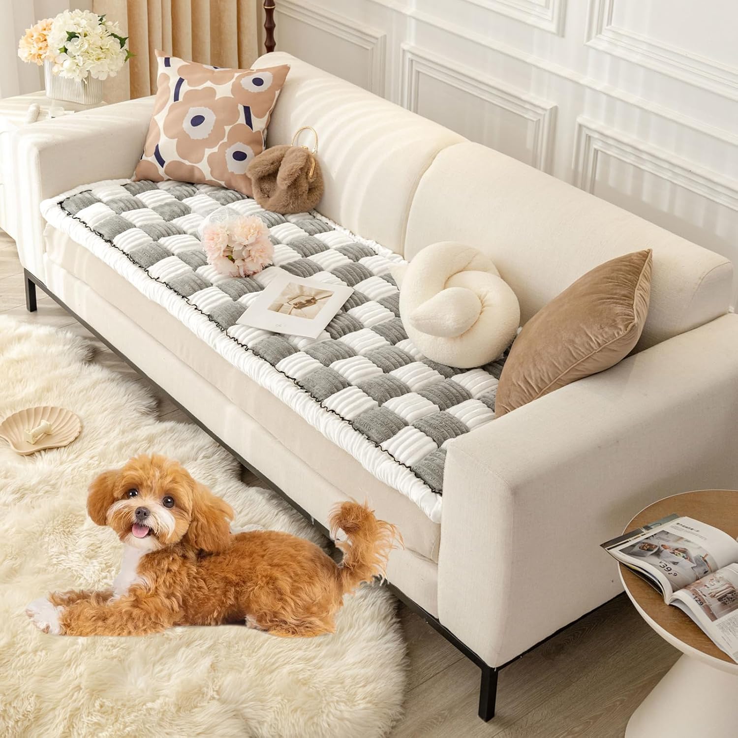 | Included Components | Includes 1 Piece Fuzzy Padded White and Chocolate Patchword Design Couch Cover for 3 Cushion Couch Sofa |