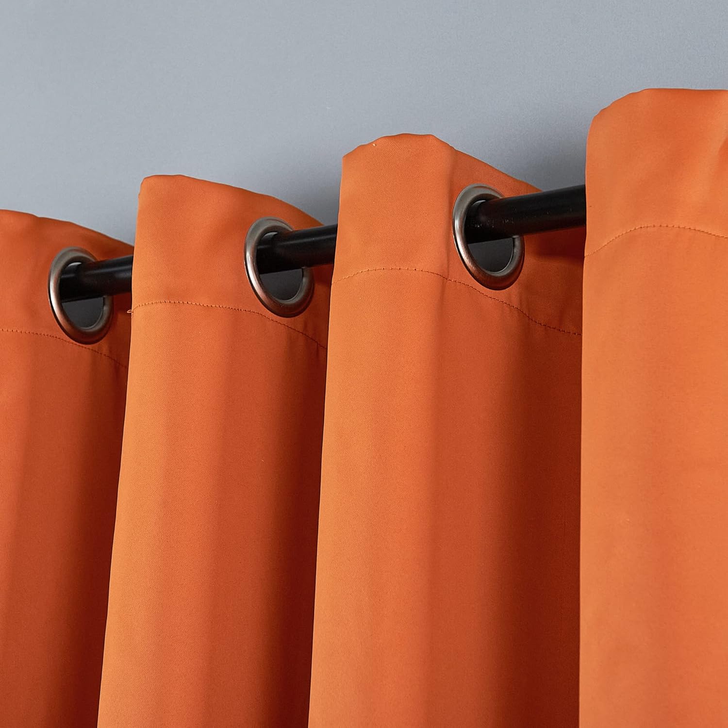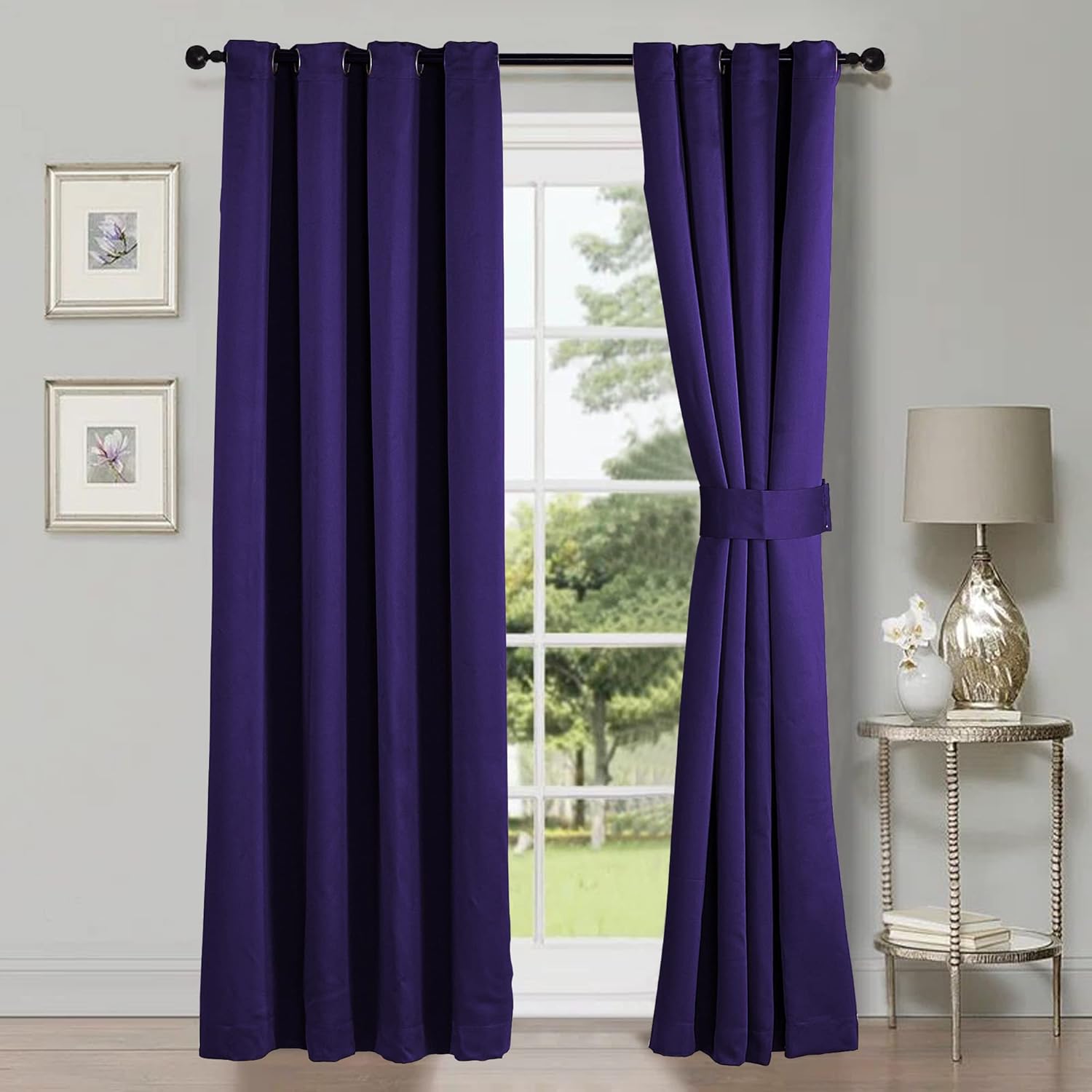 This blackout curtain set includes 2 panels and 2 tiebacks, available in 3 sizes (54" x 63", 54" x 84",54" x 96") and multiple colors for your selection. This curtain blocks out most of the light and has functions of light isolation and thermal insulation. The thick and heavy fabric helps maintain the temperature of the room, keeping it warm in winter and cool in summer. It reduces noise levels and creates a peaceful environment. This blackout curtain not only blocks out light but also enhances privacy for your home by shielding the view from outside. This curtain comes with metal grommets for easy hanging. The inner diameter of the metal ring is 1.57 inches. Machine wash using cold water with like colors on delicate cycle.Tumble Dry Low Heat Separately. Hang Dry If Desired. Do Not Bleach.