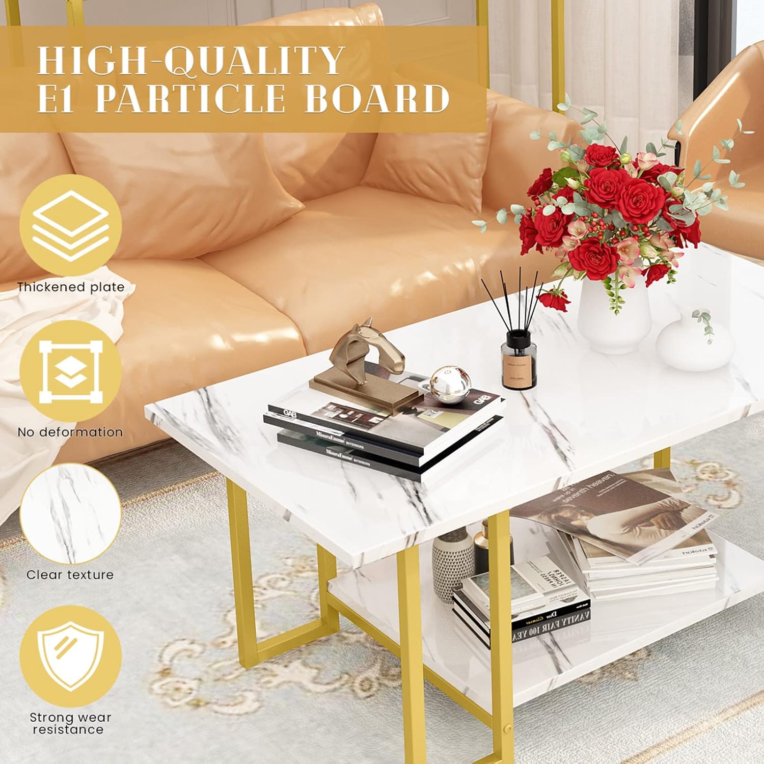 | Item Type Name | Recaceik Mid-Century Coffee Table Set of 3, Faux Marble Coffee Table and Square End Table Sets with Storage Shelves & Metal Frame, Living Room Table Sets for Bedroom Office, Easy Assembly |