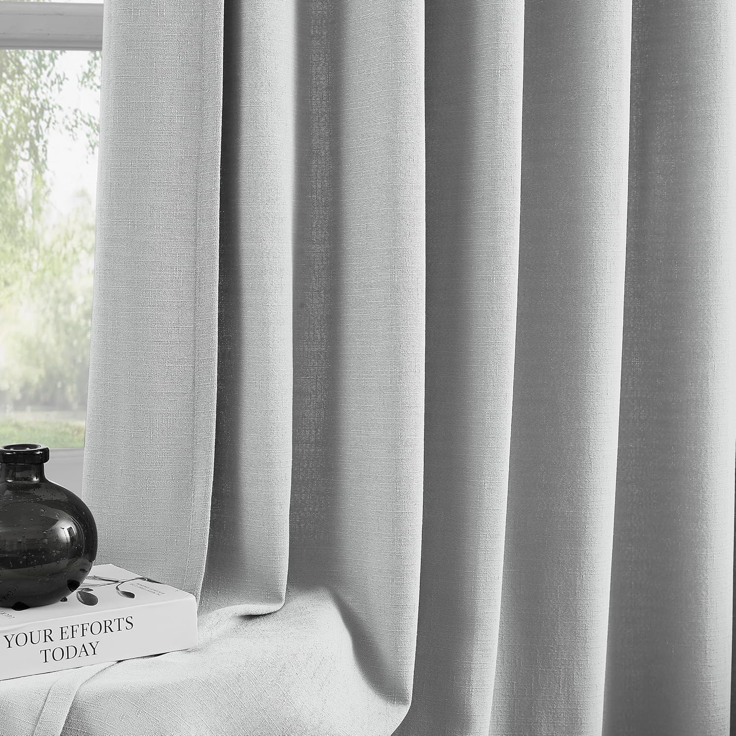 | Fabric Type | Faux Linen Look Texture Light Filtering Window Curtains |