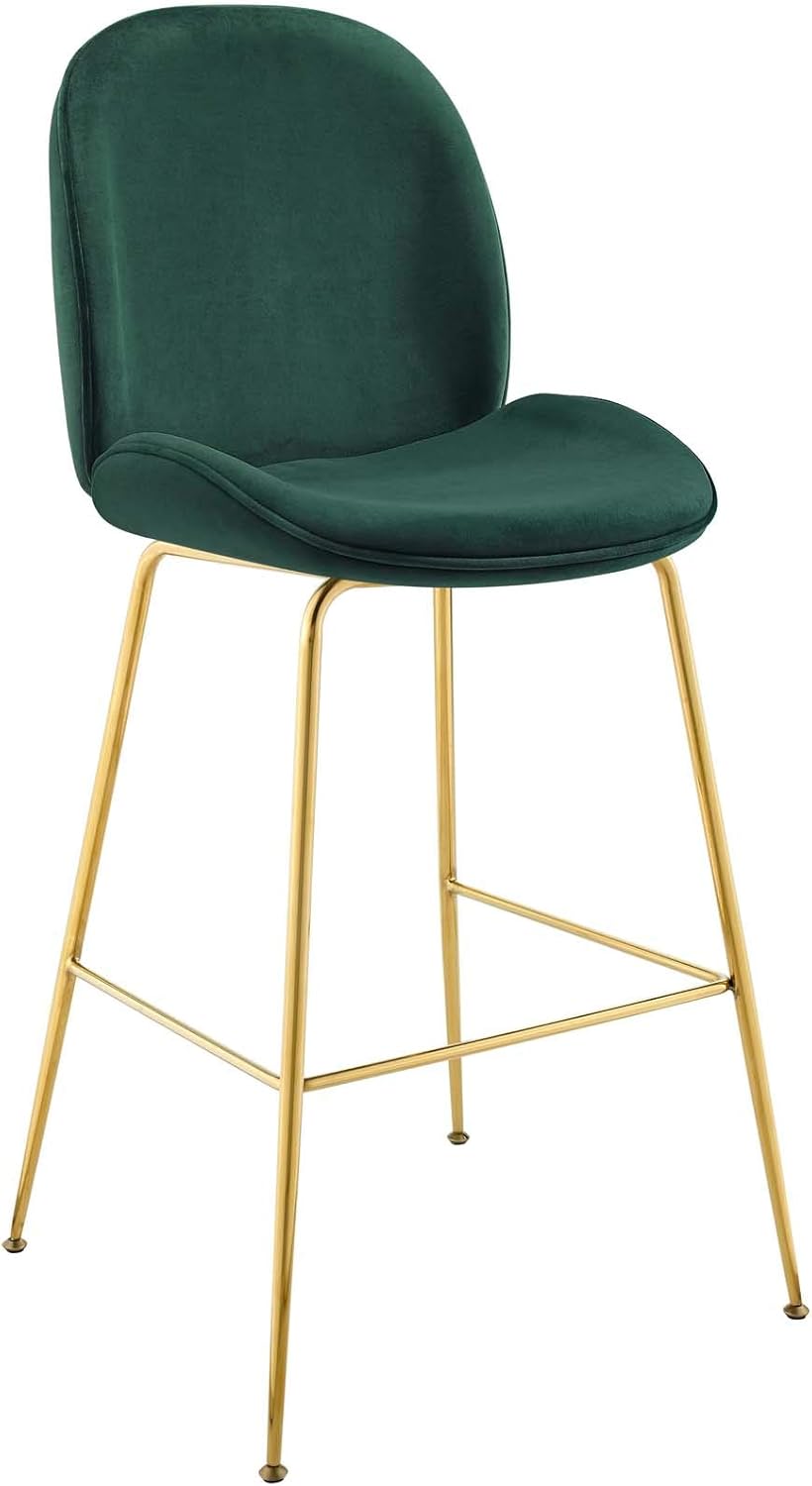 Breeze into vintage glamour decor with the whimsical Scoop counter stool. Supported by a splayed gold stainless steel frame, Scoop comes with a soft, stain-resistant performance velvet upholstery for a unique addition to your counter decor. Padded in dense foam, Scoop features simple curves and a sleek, minimalist frame that combine to deliver a modern counter stool perfect for all your counter height needs. Complete with a footrest and non-marking foot caps, transform your kitchen decor today with this cheerful and elegant counter height stool.