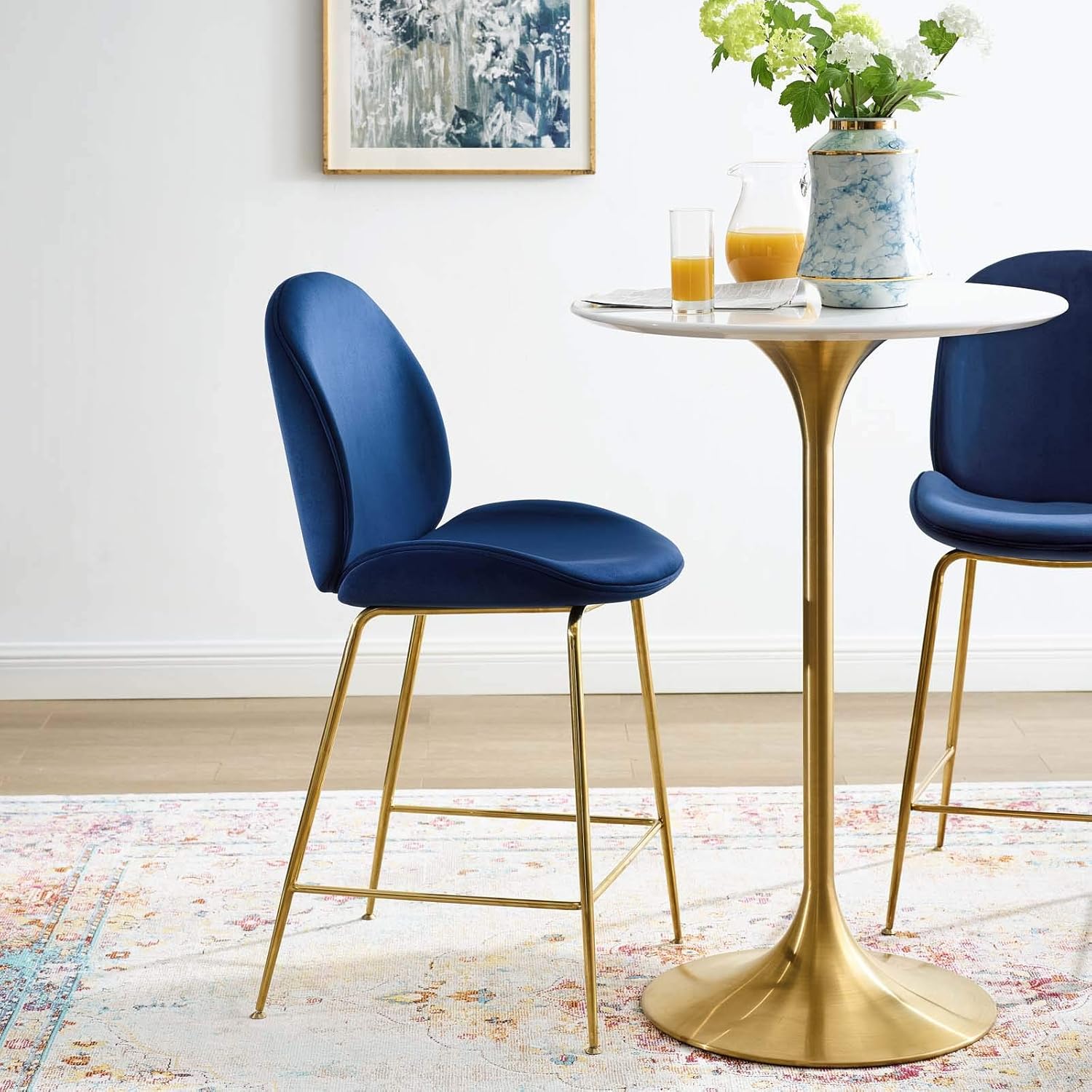 | Item Type Name | Modway Scoop Performance Velvet Dining Counter Stool with Gold Stainless Steel Metal Base in Navy |