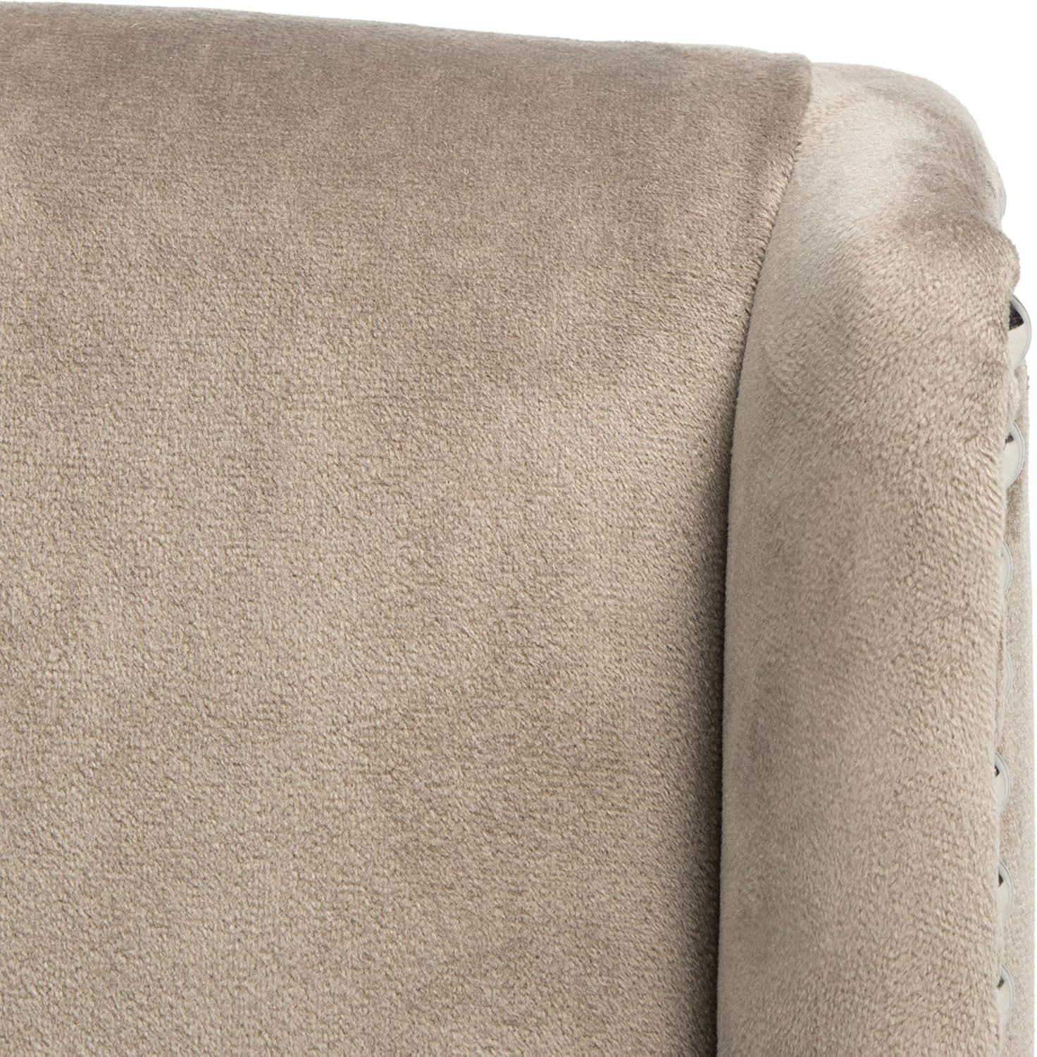 Dine in style with the understated elegance of the Humphrey side chair. Beautifully transitional, this chair is the perfect complement to contemporary tables and looks just as great in the living room. With barely there sloped arms, straight birch legs finished in cherry mahogany and mushroom taupe cotton velvet upholstery, the chic Humphrey chair gets a punch of pizazz with silver nail heads.