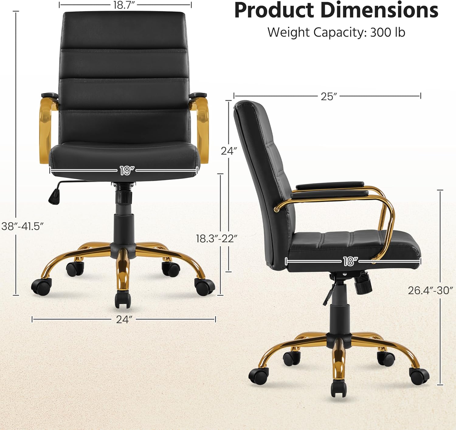 | Size | 24″ W × 25″ D × (38-41.5)″ H |