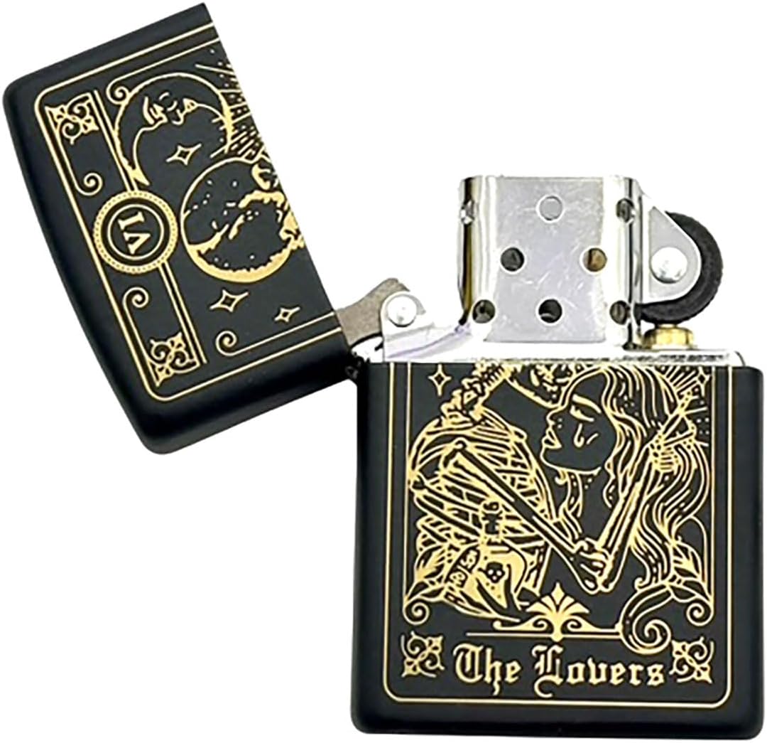 Unlock a blend of mystery, craftsmanship, and personalization with this Custom Tarot Card Zippo Lighter. Featuring 23 engraved card designs from the Major Arcana and classic court cards like the King and Knight of Swords, this lighter lets you carry your spiritual archetype in your pocket. Choose the symbol that resonates most — The High Priestess, The Hermit, The Sun, or even Death. Made in the USA, backed by Zippo’s lifetime guarantee, and personalized with up to 5 engraved lines, this is the ultimate fusion of mysticism and function. Whether for ritual, everyday use, or as a striking gift, it delivers timeless Zippo quality with a soul.