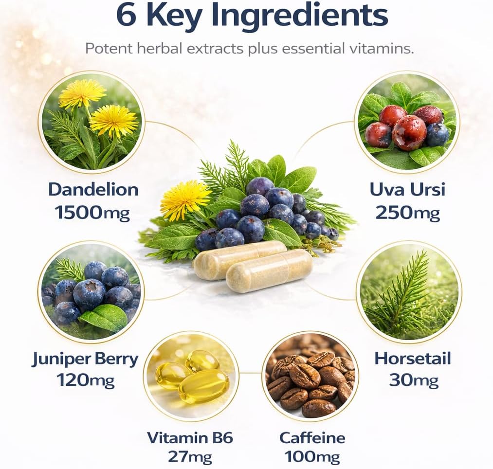 DryLeaf is a dietary supplement formulated with a blend of traditional herbal extracts including dandelion leaf, uva ursi, juniper berry, horsetail, potassium, and vitamin B6. This carefully balanced formula is designed to support the body’s natural water balance and help you feel lighter and more comfortable throughout the day. Enhanced with caffeine for added energy and alertness, DryLeaf is made for those who want gentle, non-depleting support as part of an active lifestyle. Each bottle contains 180 capsules, providing a 45-day supply when taken as directed. Manufactured in a GMP-compliant facility in the USA using globally sourced ingredients, DryLeaf is crafted with quality and consistency in mind. Whether you’re staying active, traveling, or simply looking to feel your best every day, DryLeaf offers a natural supplement option to complement your wellness routine. These statements have not been evaluated by the Food and Drug Administration.