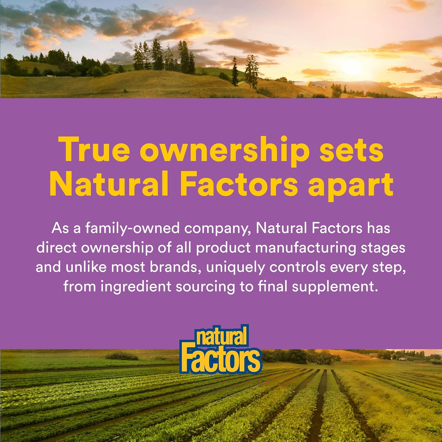 Embark on a journey towards tranquil sleep with Natural Factors Tranquil Sleep. This health supplement's unique blend of melatonin, L-theanine, and 5-HTP work together as a dietary supplement to support your nightly rest. Designed as a calming aid, this formula gently supports your body's natural rhythms for calming sleep.Experience the serenity of deep sleep with our fast-acting sleep supplement, which is specifically formulated to support deep and tranquil sleep. The quick-acting formula supports optimal absorption and a calm sleep that lasts throughout the night. With this sleep support, you can bid farewell to tossing and turning, and say hello to mornings that feel rejuvenated without any grogginess.True ownership sets Natural Factors apart. As a family-owned company, we have direct ownership of all product manufacturing stages and, unlike most brands, we uniquely control every step from ingredient sourcing to final supplement. This includes sourcing from our own organic farms, where we’ve been practicing regenerative farming for over thirty years. Our research-supported formulas are developed by our diverse medical team to deliver highly effective products with meaningful levels of ingredients that deliver results to you.Natural Factors products are third-party certified by ISURA to be non-GMO and tested for over 800 contaminants and adulterants, providing additional assurance of unparalleled purity and quality. We’re committed to doing business sustainably and with integrity and are proudly Carbon-Neutral certified. For over 60 years, we’ve demonstrated our unwavering commitment to quality, making Natural Factors a supplement brand you can trust.