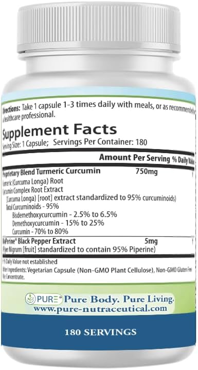 Nature's Most Respected Inflammatory Modulator Turmeric Curcumin has been a cornerstone of wellness for centuries, but modern science has unlocked its true potential. PURE Turmeric Curcumin combines 750mg of high-purity extract with the "catalyst" it needs to work: BioPerine. Without black pepper, curcumin is difficult for the body to absorb; with it, you unlock a 2000% increase in bioavailability. Pure Living, Simplified. One capsule a day is all it takes to support your joints, your heart, and your immune system. Made with "Pure Ingredients" for a "Pure Body," our Turmeric is the ultimate long-term investment in your physical comfort and cellular health.