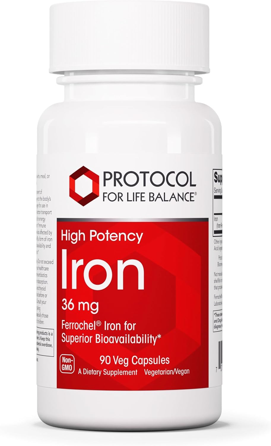 Protocol for Life Balance Iron 36mg has 36mg of elemental iron in a bisglycinate form, a necessary element for energy production and body temperature regulation.* Iron is also important for the proper functioning of the immune system and neurological health, making these capsules an effective immunity supplement.* This product features Ferrochel, a form of iron that has clinically demonstrated superior bioavailability and is unlikely to cause GI distress or constipation.* Ferrochel is a registered trademark of Albion Laboratories, Inc. The iron capsules are vegan/vegetarian, making them an excellent choice for those following a plant-based diet. They are also free from common allergens, such as dairy, eggs, nuts, and soy, making them suitable for individuals with dietary restrictions. The capsules are also halal, kosher, and made without gluten, catering to an array of dietary requirements. Take 1 capsule daily with a meal, or as directed by your healthcare practitioner. At Protocol For Life Balance, our mission is to provide high-quality, affordable solutions that empower people to lead healthy and happy lives. Our extensive line of premium natural health products use well-researched ingredients that meet the highest quality standards. Every Protocol For Life Balance product must pass a rigorous internal review to ensure relevance, efficacy, and quality.