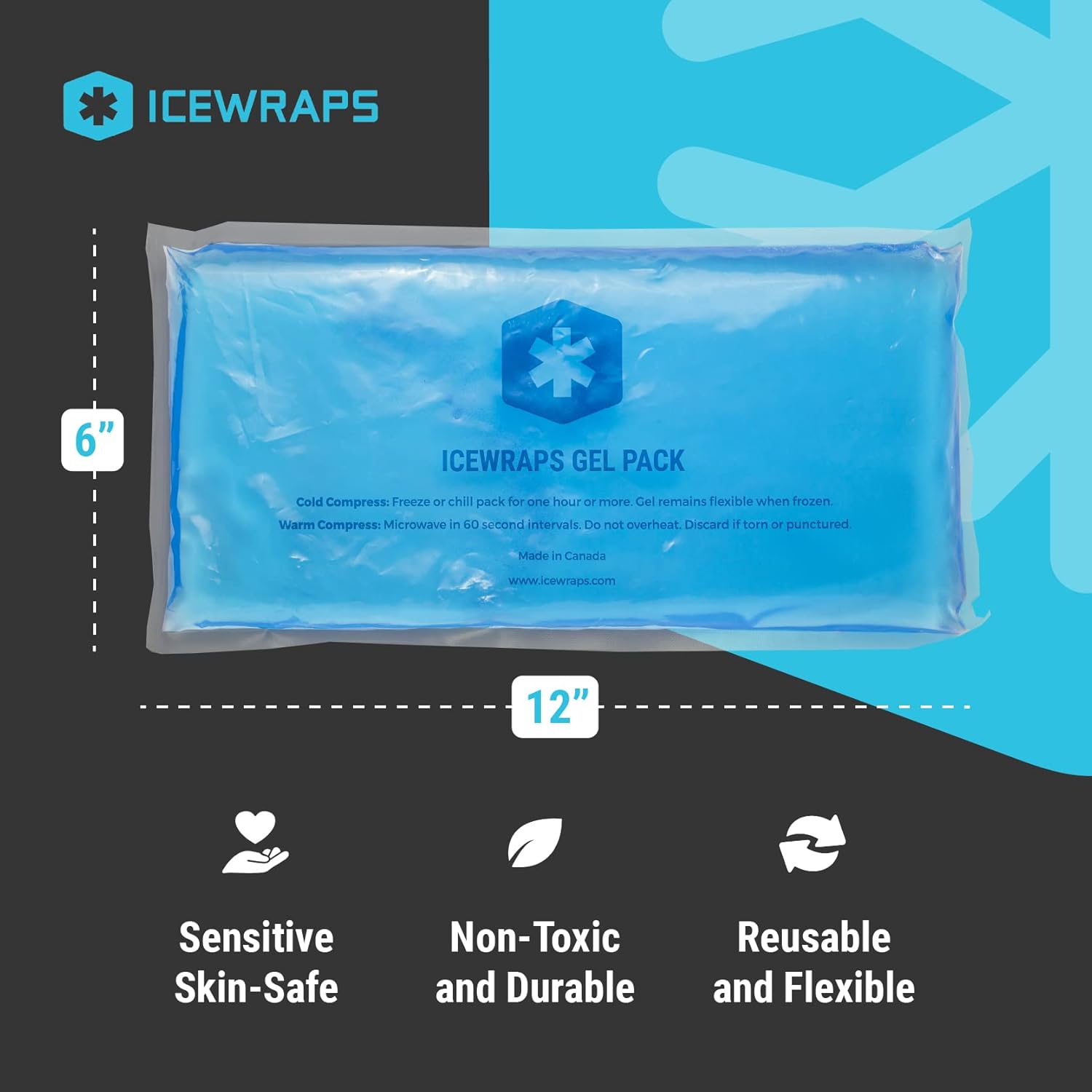 6x12 gel packs for cooling pain relief. Contain 2x more gel than standard gel packs. Stays cold longer to reduce swelling and soothe pain. Natural clay-based filling absorbs cold temperatures and then slowly releases it over an extended period of time. Soft, washable protective sleeve provides the ideal cold therapy treatment.