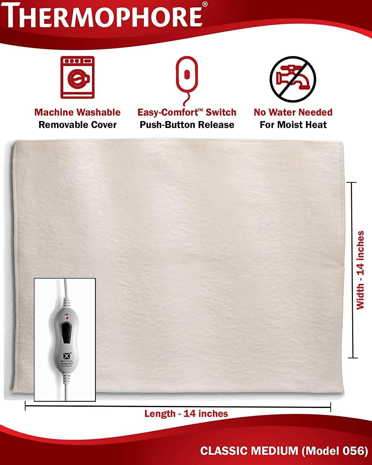 Thermophore Classic Deep-Heat Therapy Pack is designed with a special hand-held Easy-Comfort switch. Just press for heat, release to cool and alternate as often as you like. If you happen to doze off and your hand relaxes, the unit will cool as a safety feature.
