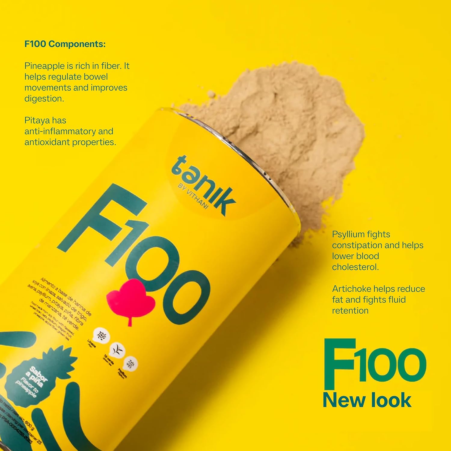 Support your digestive health naturally with Vithani Fiber F100, a premium fiber aliment made with a powerful blend of natural ingredients to promote gut balance and overall wellness. Formulated with Psyllium Husk Powder, a key source of soluble fiber, it helps regulate bowel movements, ease digestion, and support healthy cholesterol levels. This high-fiber formula is ideal for maintaining daily digestive health. Our blend also includes flaxseed, rich in omega-3 fatty acids and dietary fiber, which contribute to cardiovascular health, reduce inflammation, and promote intestinal regularity and satiety. Green tea extract delivers antioxidant benefits through polyphenols that help protect cells from oxidative stress while providing a light, natural energy boost. Each serving also contains wheat bran, oats, apple fiber, dragon fruit, pineapple, artichoke, and stevia — a functional blend designed to enhance your fiber intake and support optimal digestive health. Suggested use: Take 2 tablespoons mixed in a glass of warm water or papaya juice on an empty stomach. Experience the benefits of a clean and balanced gut with Vithani Psyllium Husk Powder Fiber Supplement – your daily ally for healthy digestion.