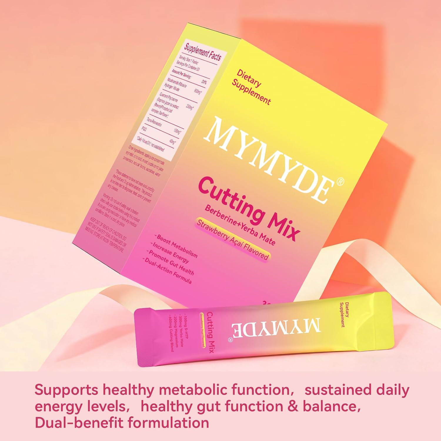 MYMYDE Cutting Drink Mix – Supports Satiety Signaling, Energy & Gut Health with Berberine, Chromium, FOS, Yerba Mate & 5-HTP Magnesium Strawberry Agai Flavor 30 Servings