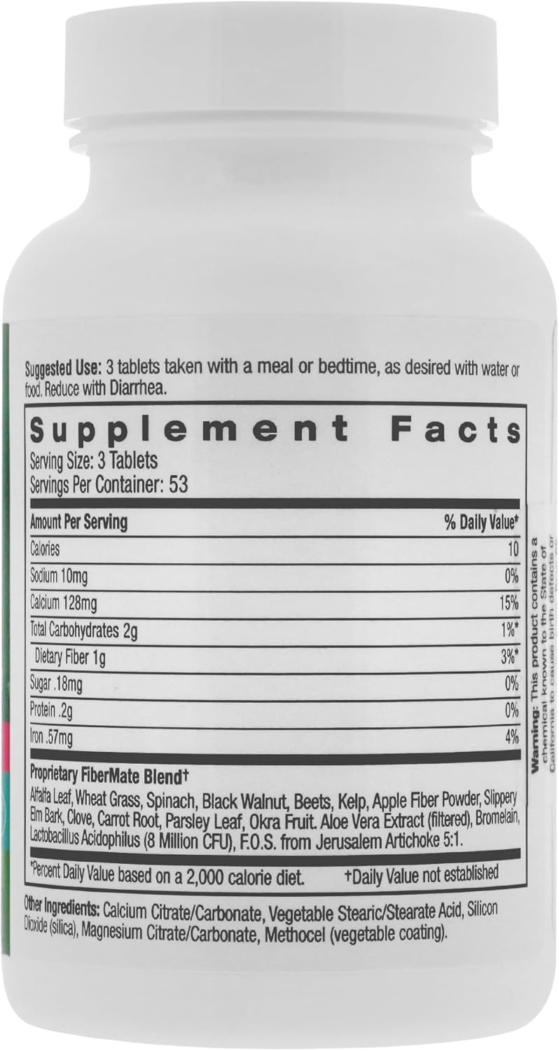 "FiberMate Tablets from Aloe Life is a supplement formulated to be a natural dietary supplement that acts as a stool softener and body detoxifier. The gluten-free formula is free from laxative irritants & substances damaging to digestive health. Our Fiber Mate Tablets are made with high-quality vegetables & herbs. Each serving of three tablets is equivalent to ¼ cup of green vegetables, and the formula is rich in minerals like magnesium, sodium, calcium, and iron, plus potassium and other trace minerals that support the natural diuretic action of unwanted water weight. When taken daily, this supplement provides optimal support for daily bowel movements, parasite control, and helping to cleanse the lymphatic system, plus supports the important Butyric Acid Cycle for preventative health. For best results, take 3 tablets with a meal or before bedtime, with food or water as directed by a healthcare professional. Use caution: if diarrhea or loose stool occurs, reduce daily intake. Safe and effective formula for daily use by adults, seniors, children (4+ years), pregnant women, and weight-conscious individuals. Aloe Life International Inc, a leader in the Aloe industry for over 30 years, was founded in 1991 by clinical nutritionist, researcher, and author Karen Masterson Koch. Her clinical experience and education in immunology working with the famous Dr. Virginia Livingston, MD, gave her a thirst for more research and natural health application. Studies at Dallas Fort Worth Medical University and other institutions around the globe on aloe vera launched her research into the whole leaf aloe vera concentrate which revealed amazing results and led to the very best - Aloe Life products!"