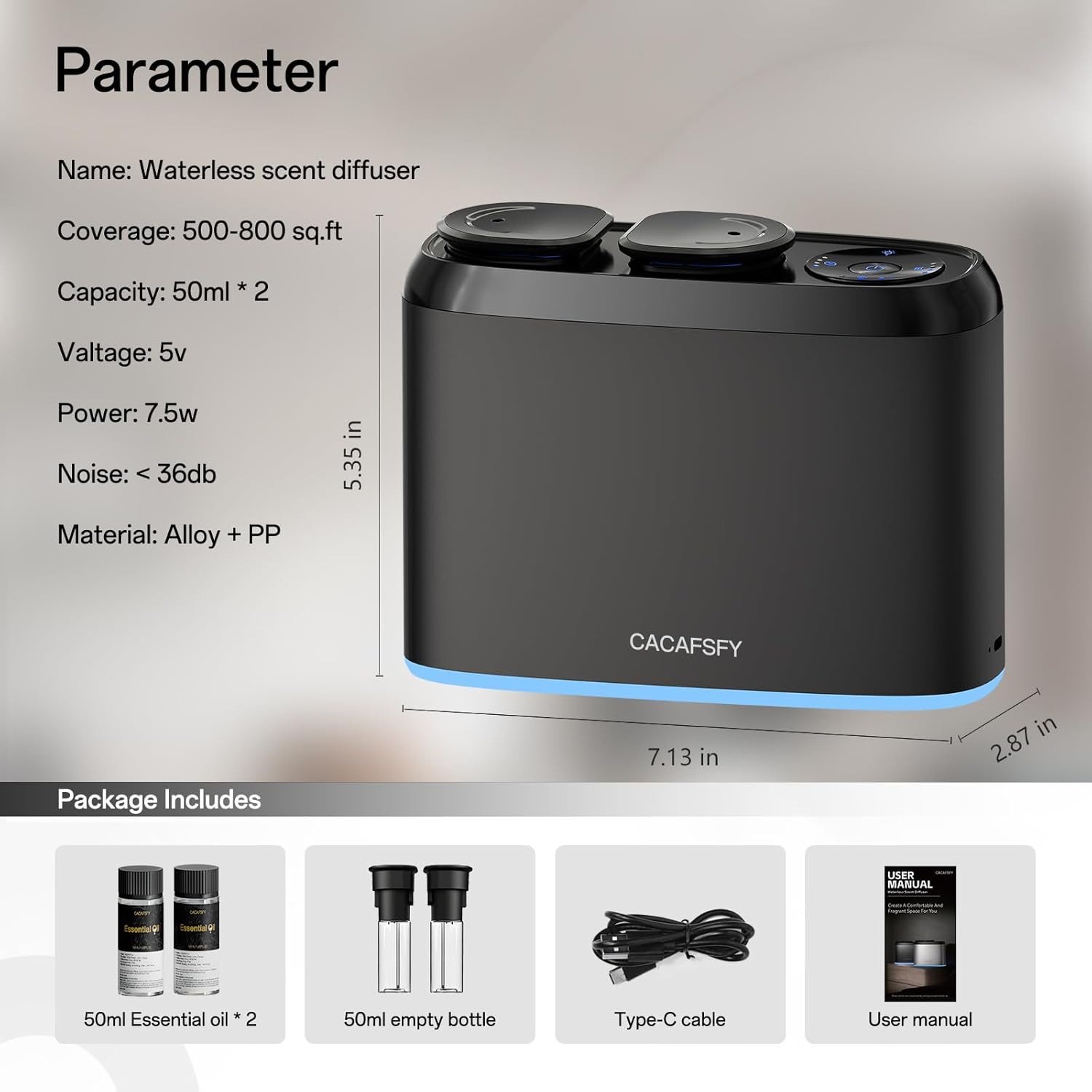 | Included Components | scent diffuser machine,50ml empty bottlesx2, plug adapter |