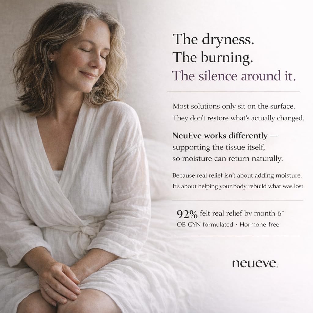 You've probably tried something before. Maybe a lubricant that wore off in minutes. Maybe an estrogen cream that made you nervous. Maybe something that just didn't work. Over 200,000 women eventually found NeuEve. Here's what makes the Assorted kit different: it gives you all three formulas — Silk, Silver, and Gold — plus a daily Salve sample, so you can find exactly what your body needs in 31 days before committing to a single formula. No hormones. No estrogen. No boric acid. No parabens. Just organic botanicals and food-grade ingredients, formulated by an OB-GYN. Includes: 4 Silk inserts · 2 Silver inserts · 1 Gold insert · 1 Salve sample · 31 days of support OB-GYN Formulated · Made in USA · Hormone-Free · Estrogen-Free · Non-GMO · Gluten-Free · Cruelty-Free